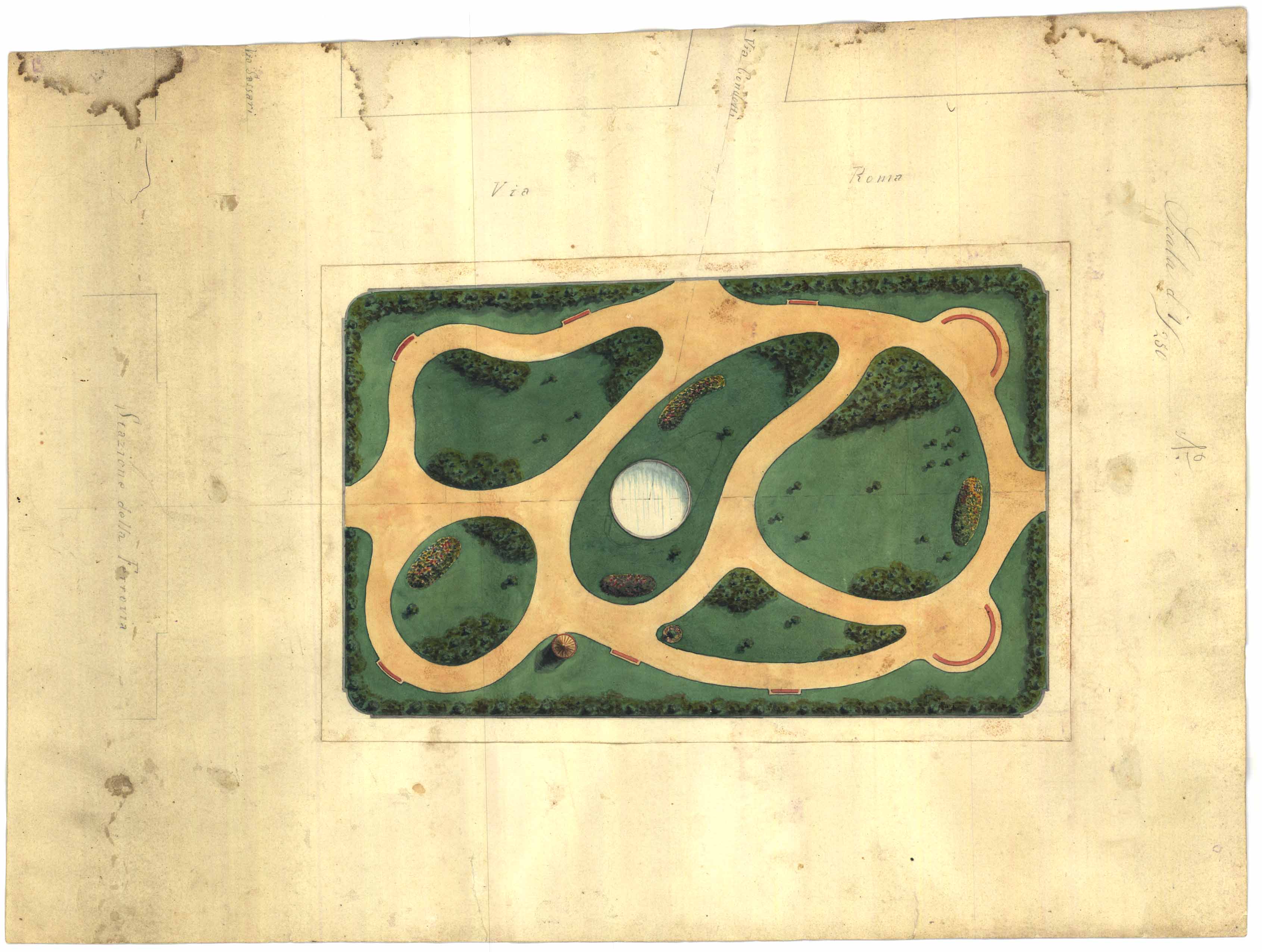 - Si tratta della pianta dell'area dove un tempo sorgeva il polverificio, presso l'attuale viale S. Vincenzo, utilizzata per ingrandire i giardini pubblici..