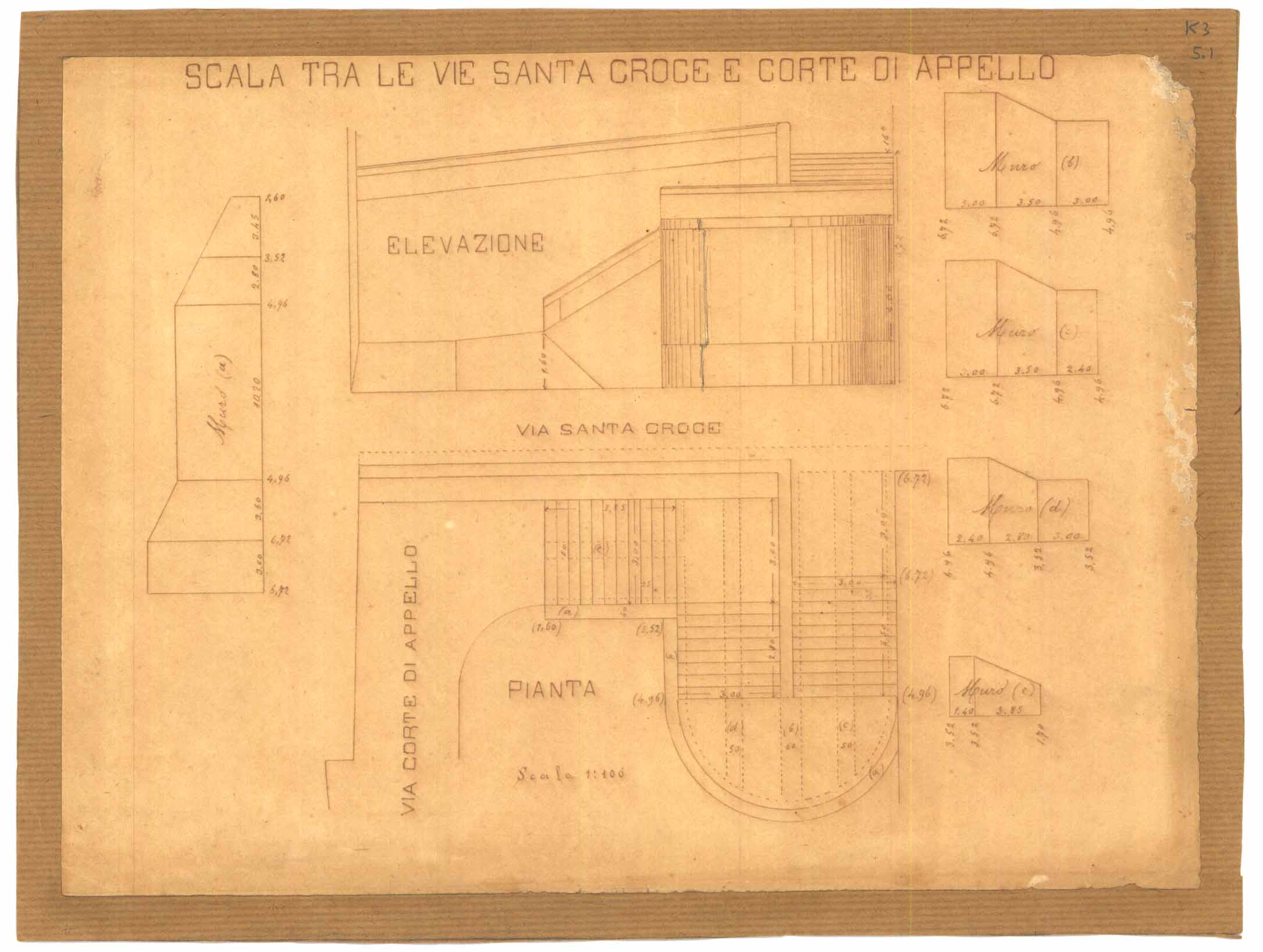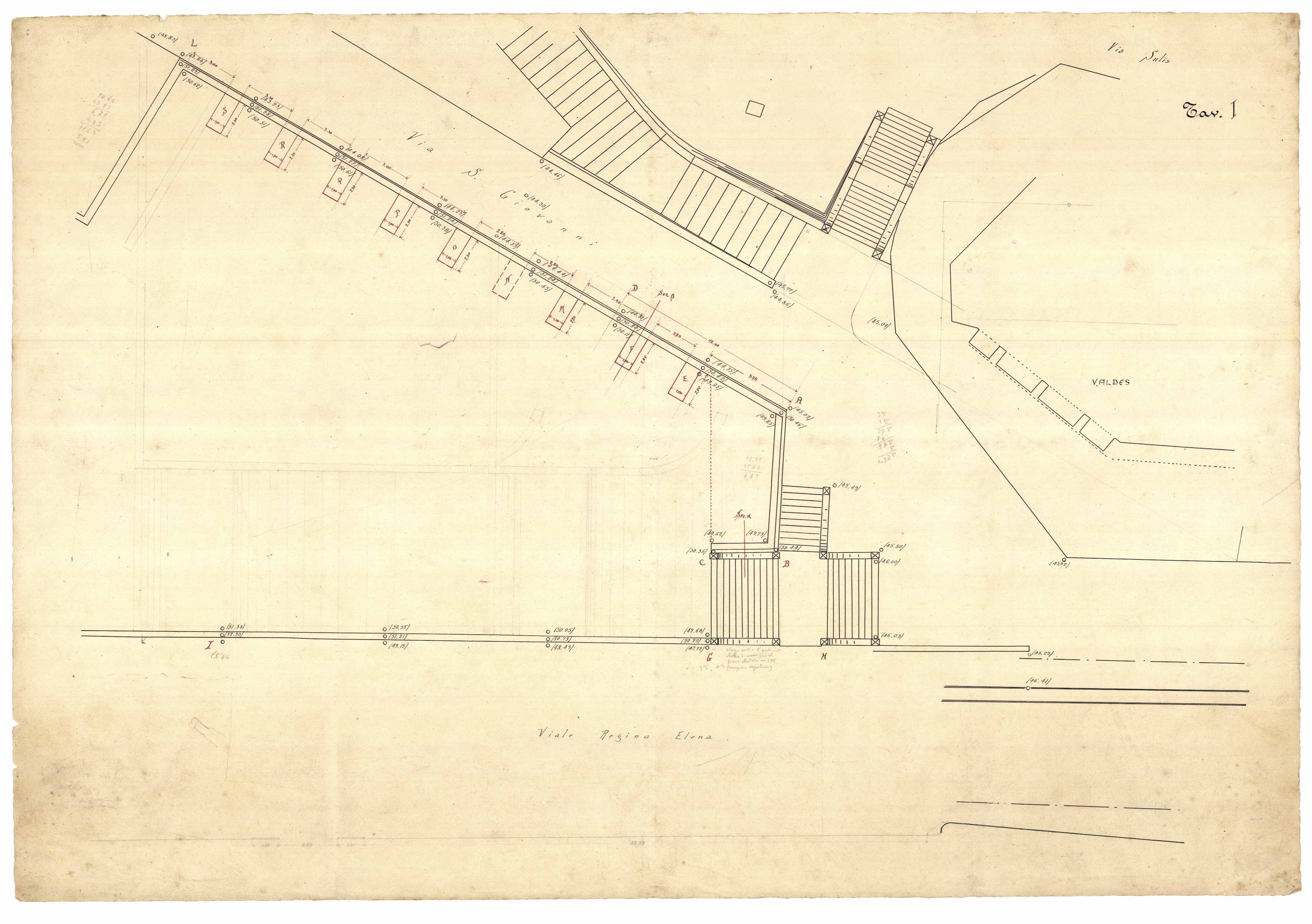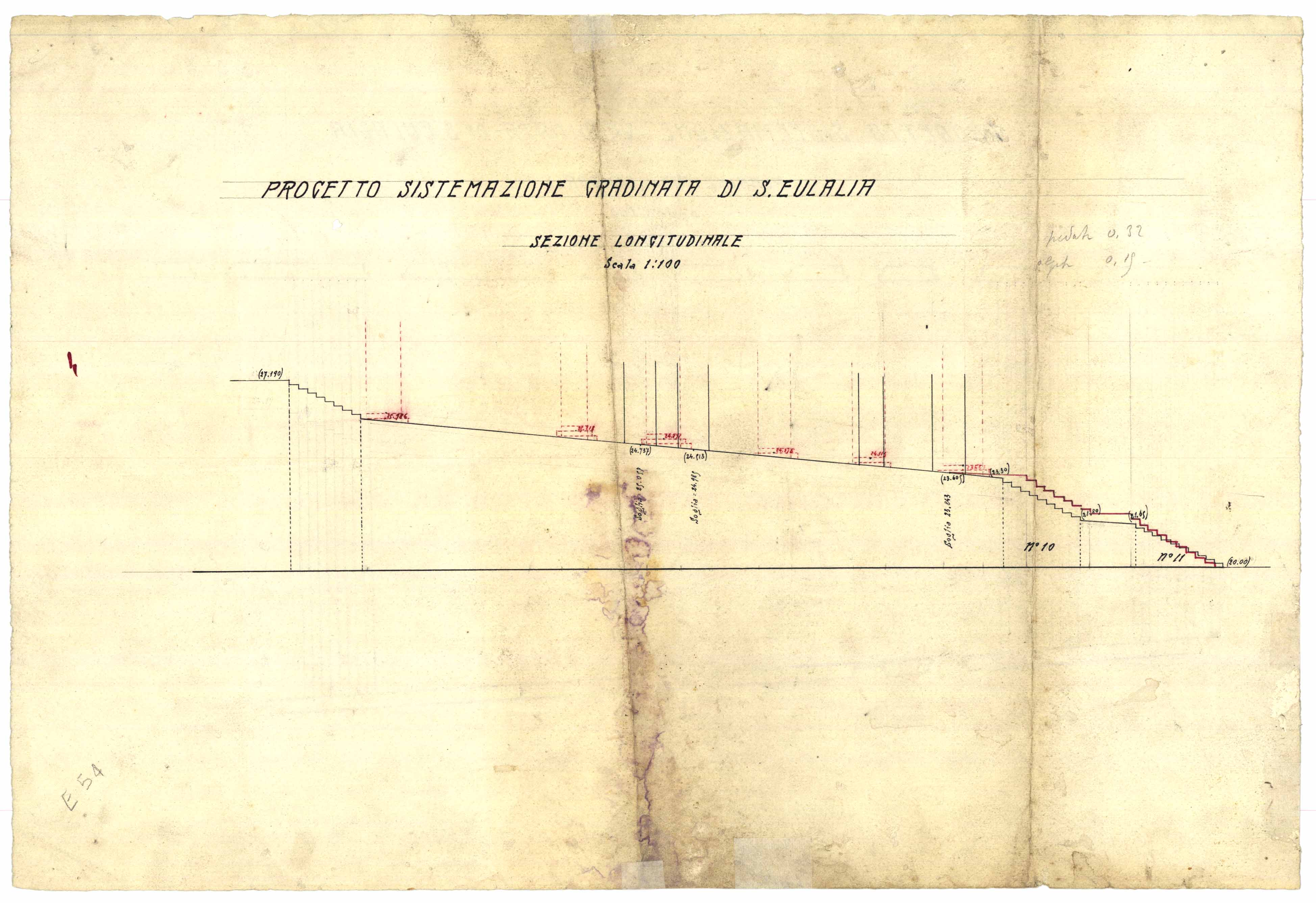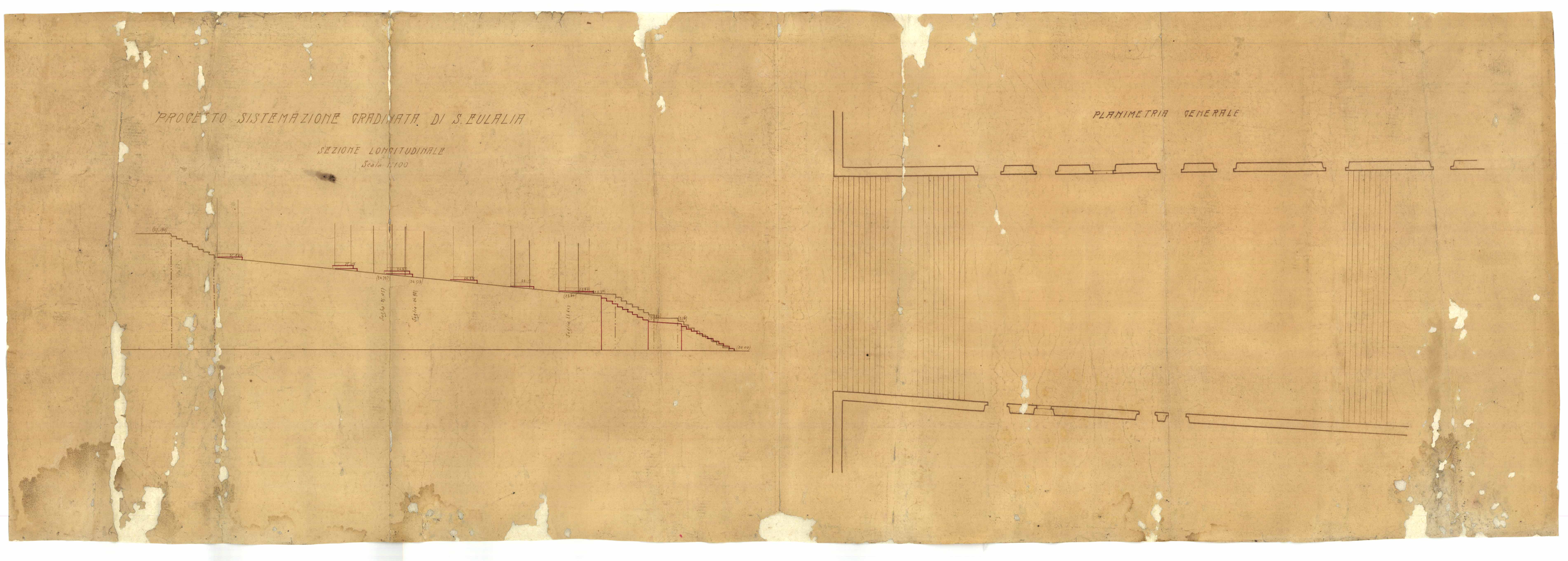 - Progetto di sistemazione della gradinata di S. Eulalia.-Sezione longitudinale e planimetria generale.