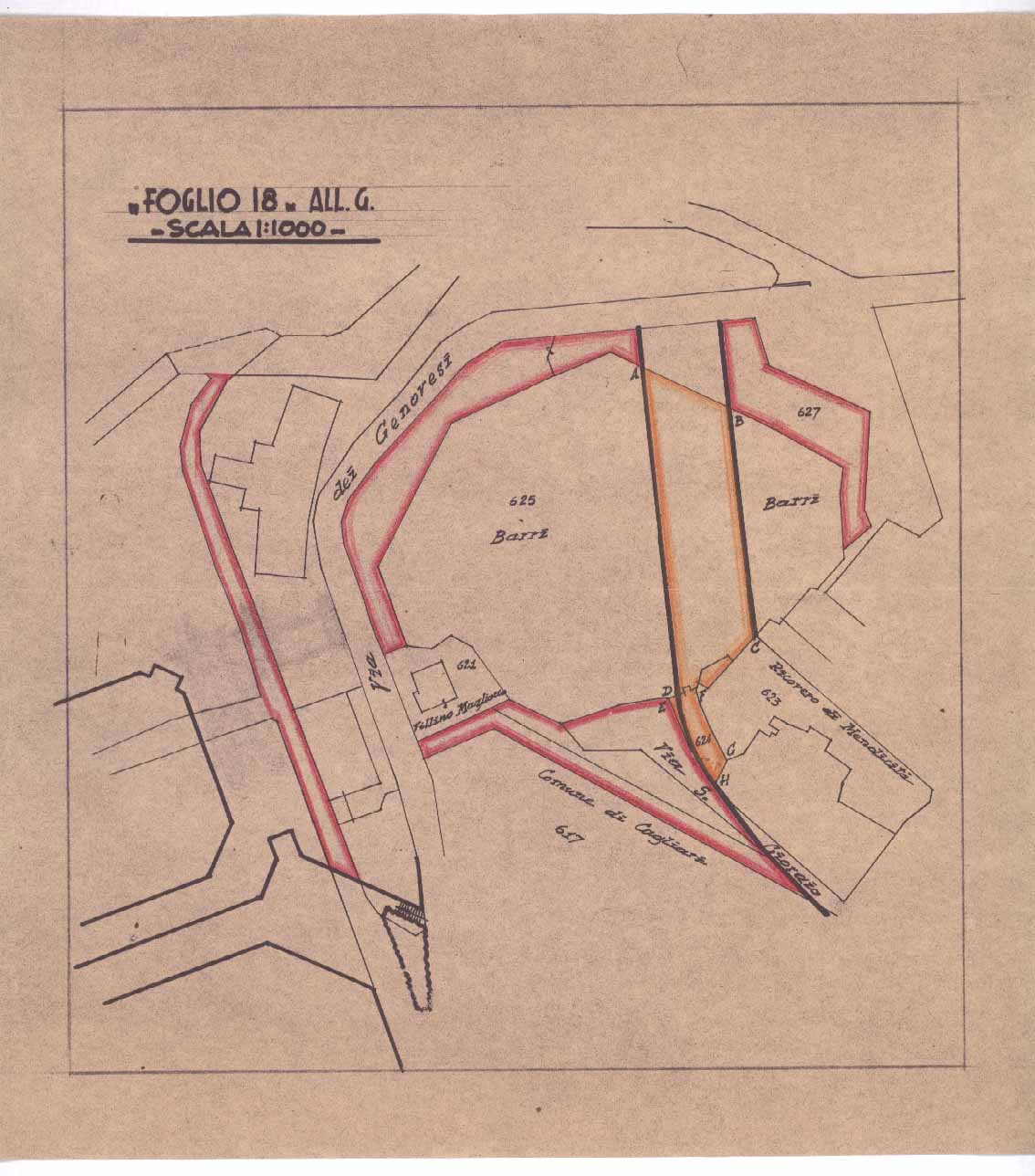 - Progetto per la costruzione dell'attuale via Dante con l'indicazione delle varie proprietà.