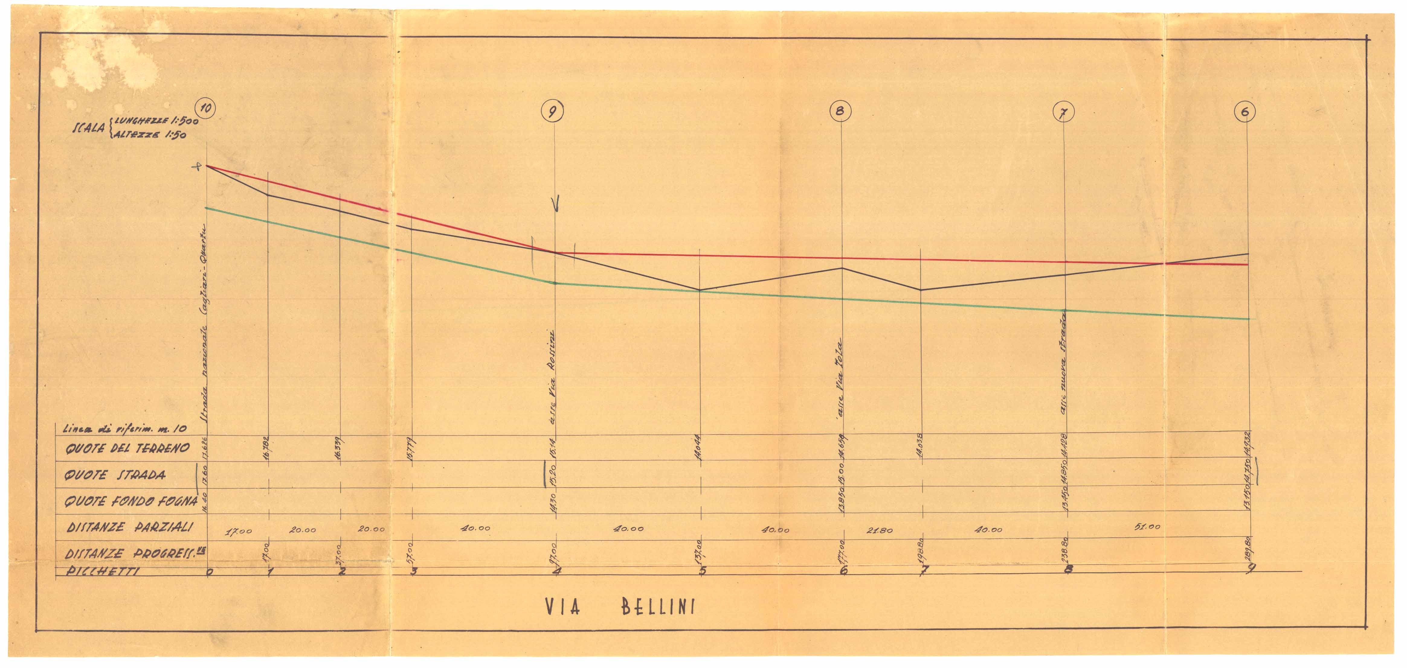 - Disegno in sezione della via Bellini nel quartiere di S. Benedetto.