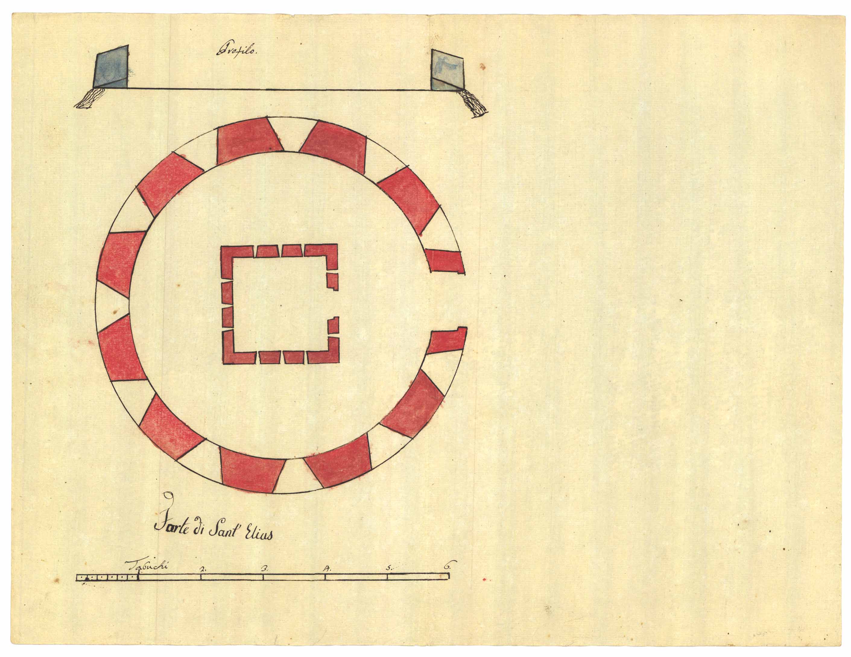 - Progetto con profilo e pianta del fortino di Sant'Ignazio.