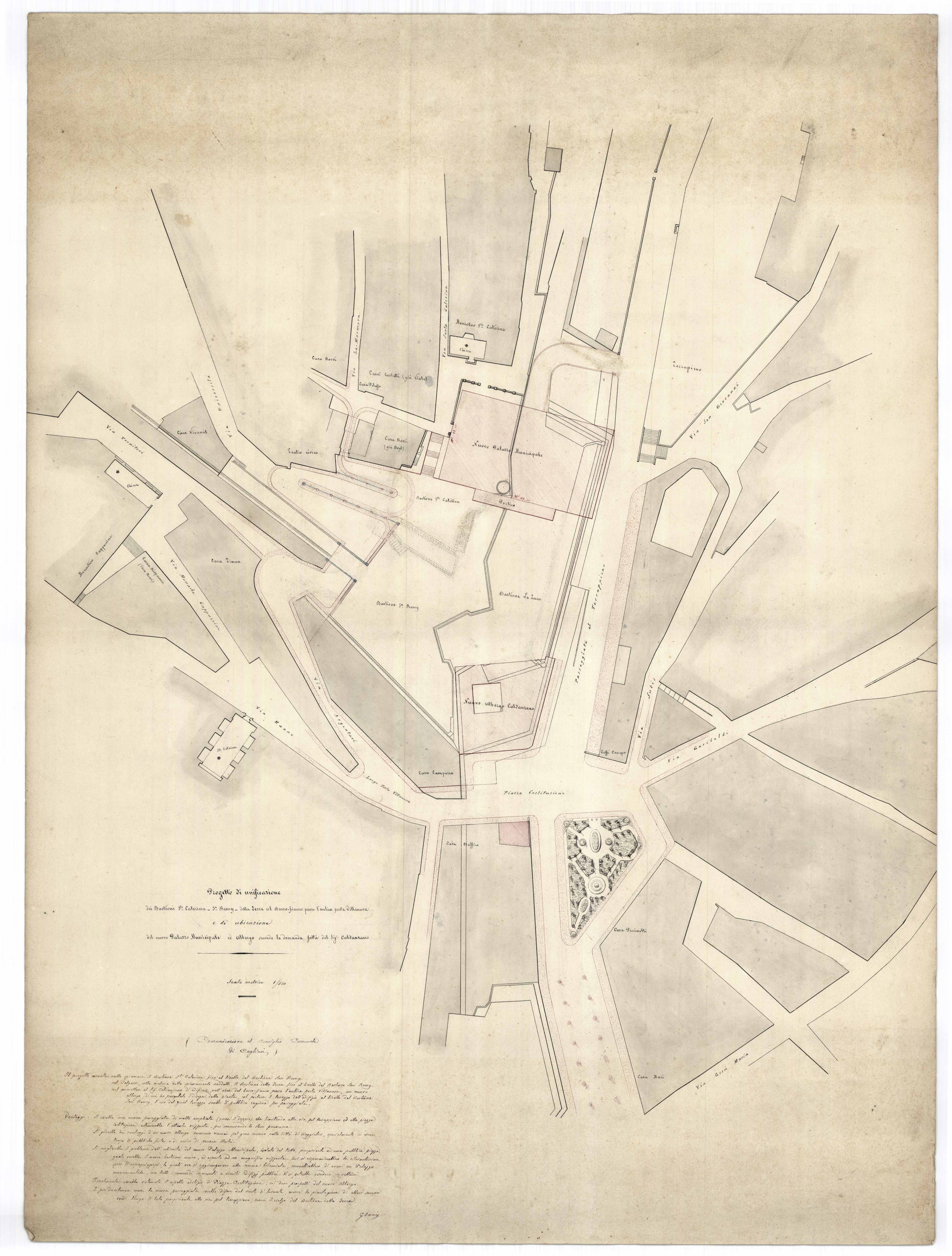 - Progetto di unificazione dei bastioni S. Caterina, S. Remy, della Zecca col basso fianco presso l'antica Porta Villanova e di ubicazione del nuovo Palazzo Municipale ed albergo secondo la domanda fatta dal sig. Caldanzano.