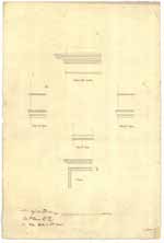 - Disegno progettuale in prospetto, in pianta e in sezione del pino terreno e del piano alto del caffè-aux da costruirsi sotto gli spalti del terrapieno.