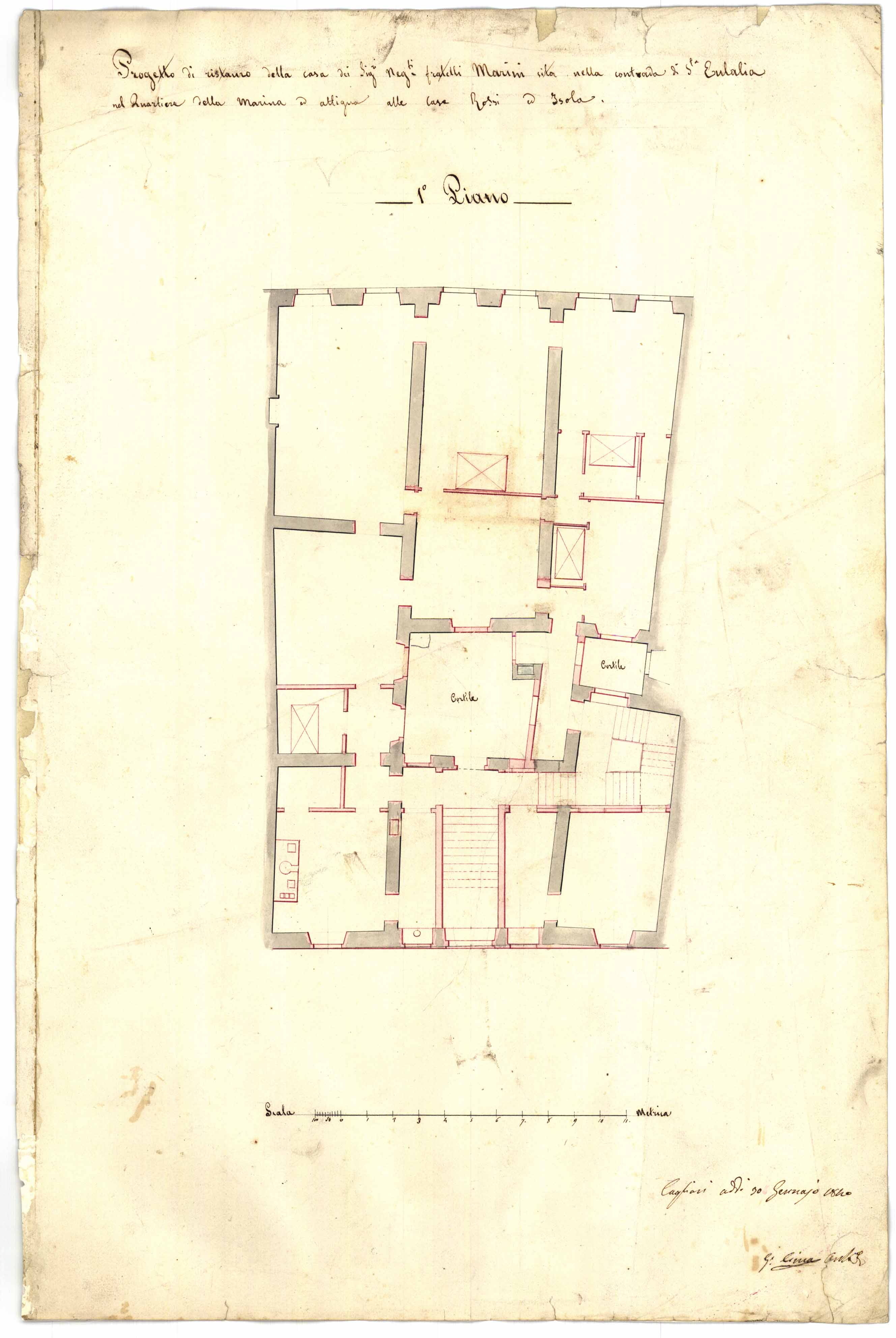 Sezione H: edifici privati- Progetto di restauro della casa dei Sig.i Neg.i fratelli Marini sita nella contrada di S.ta Eulalia nel Quartiere della Marina ed attigua alle case Rossi e Isola.- 1° piano