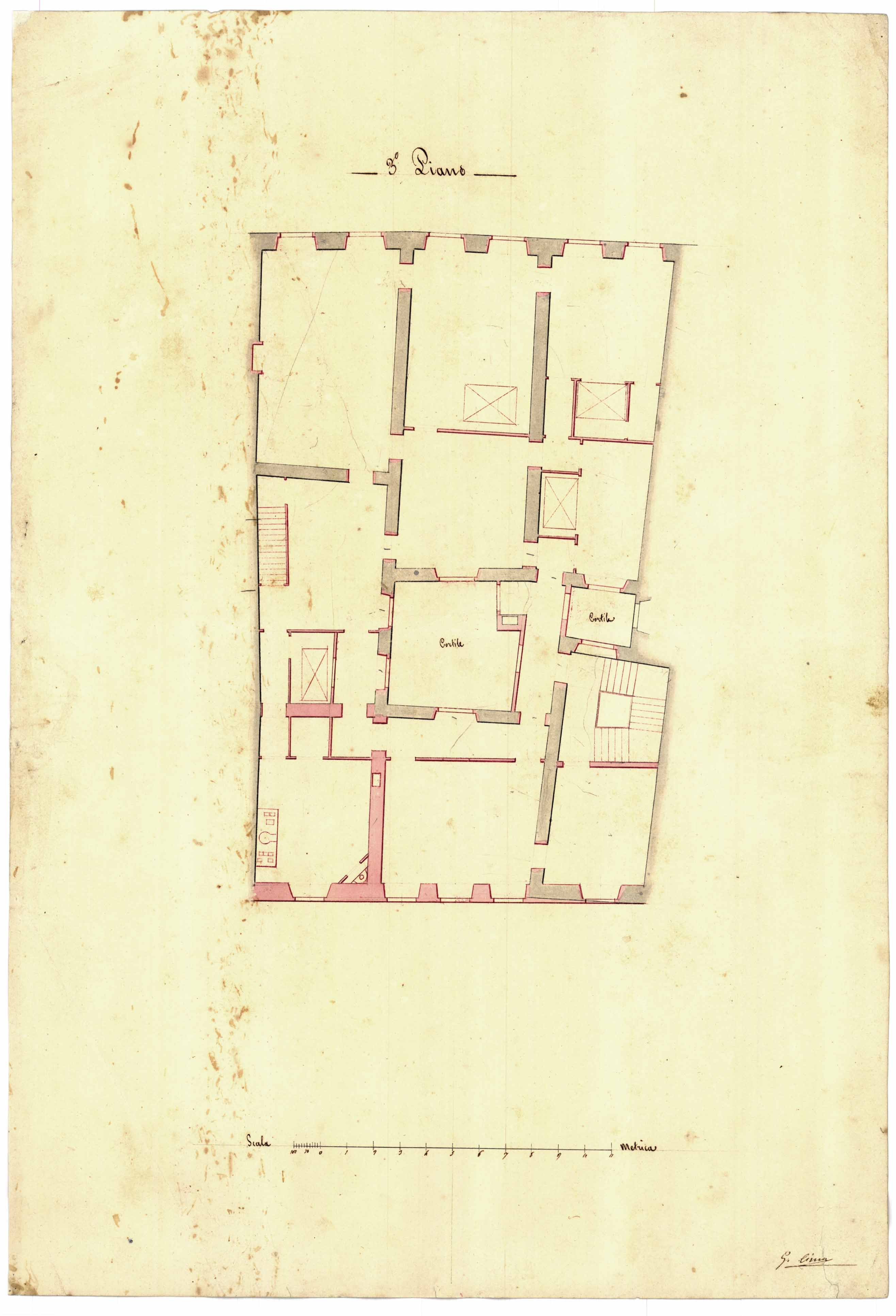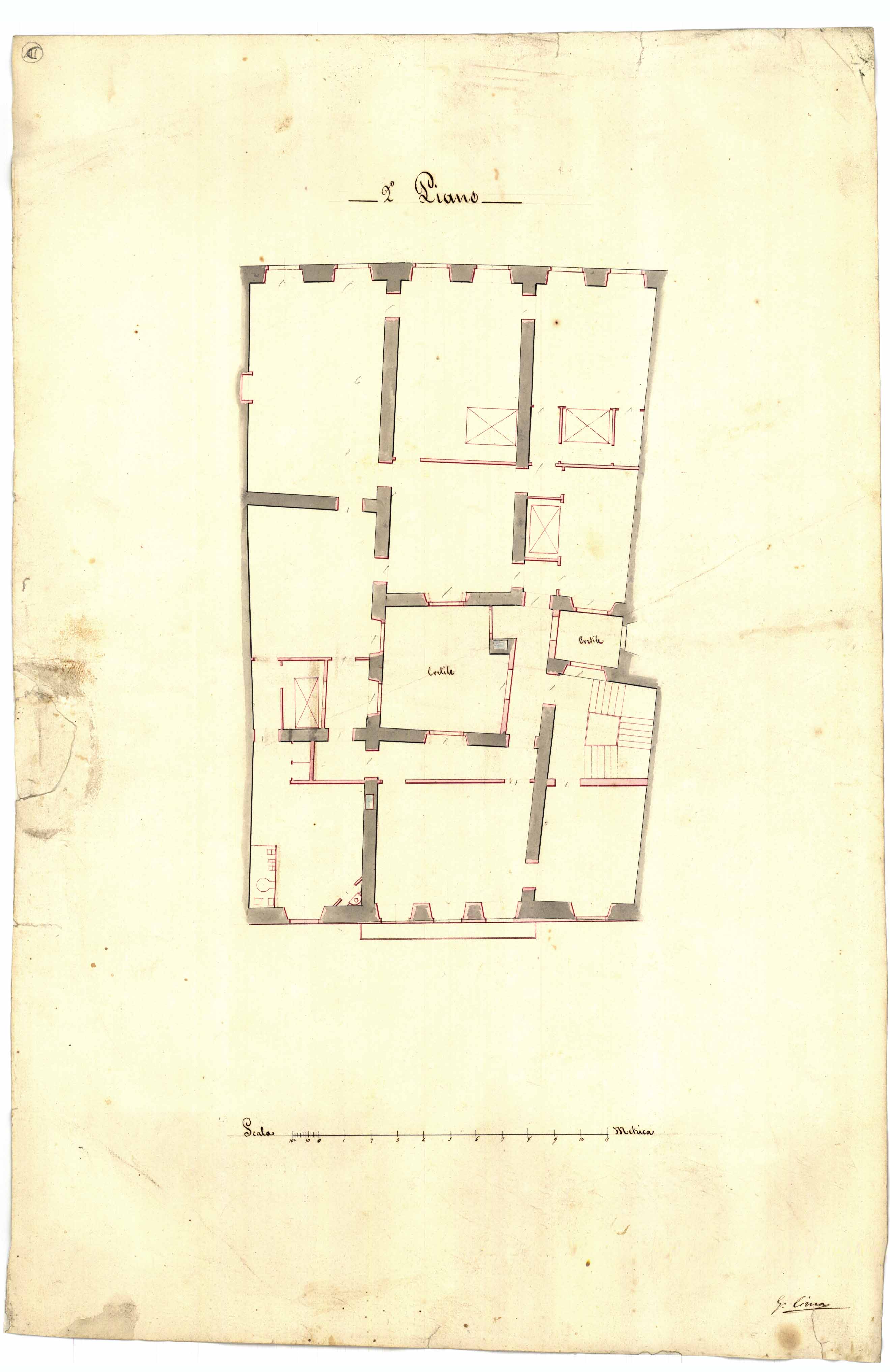 - Disegno planimetrico del 2° piano realizzato nell'ambito del progetto di restauro della palazzina dei fratelli Marini sita nel quartiere Marina.