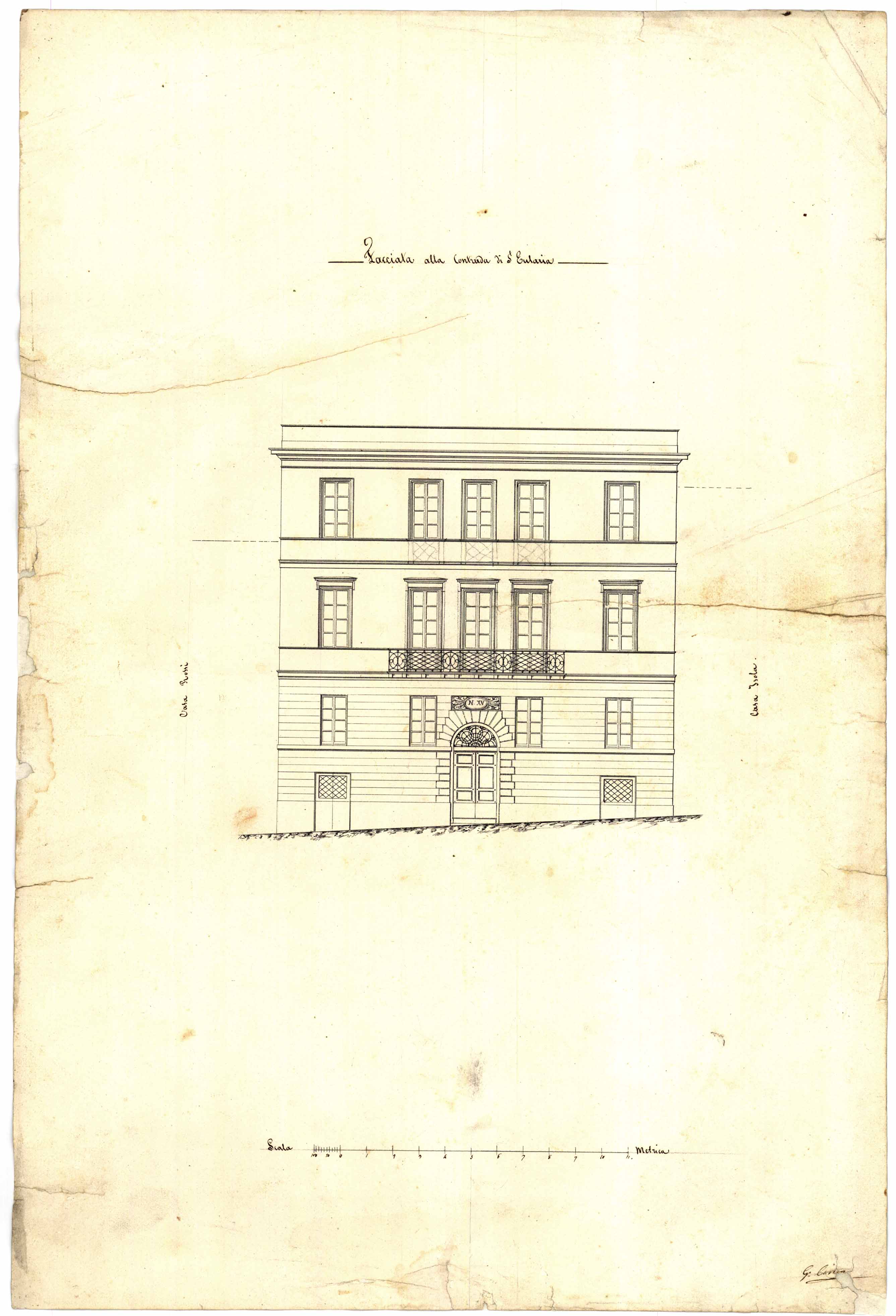 - Disegno della facciata realizzato nell'ambito del progetto di restauro della palazzina dei fratelli Marini sita nel quartiere Marina.