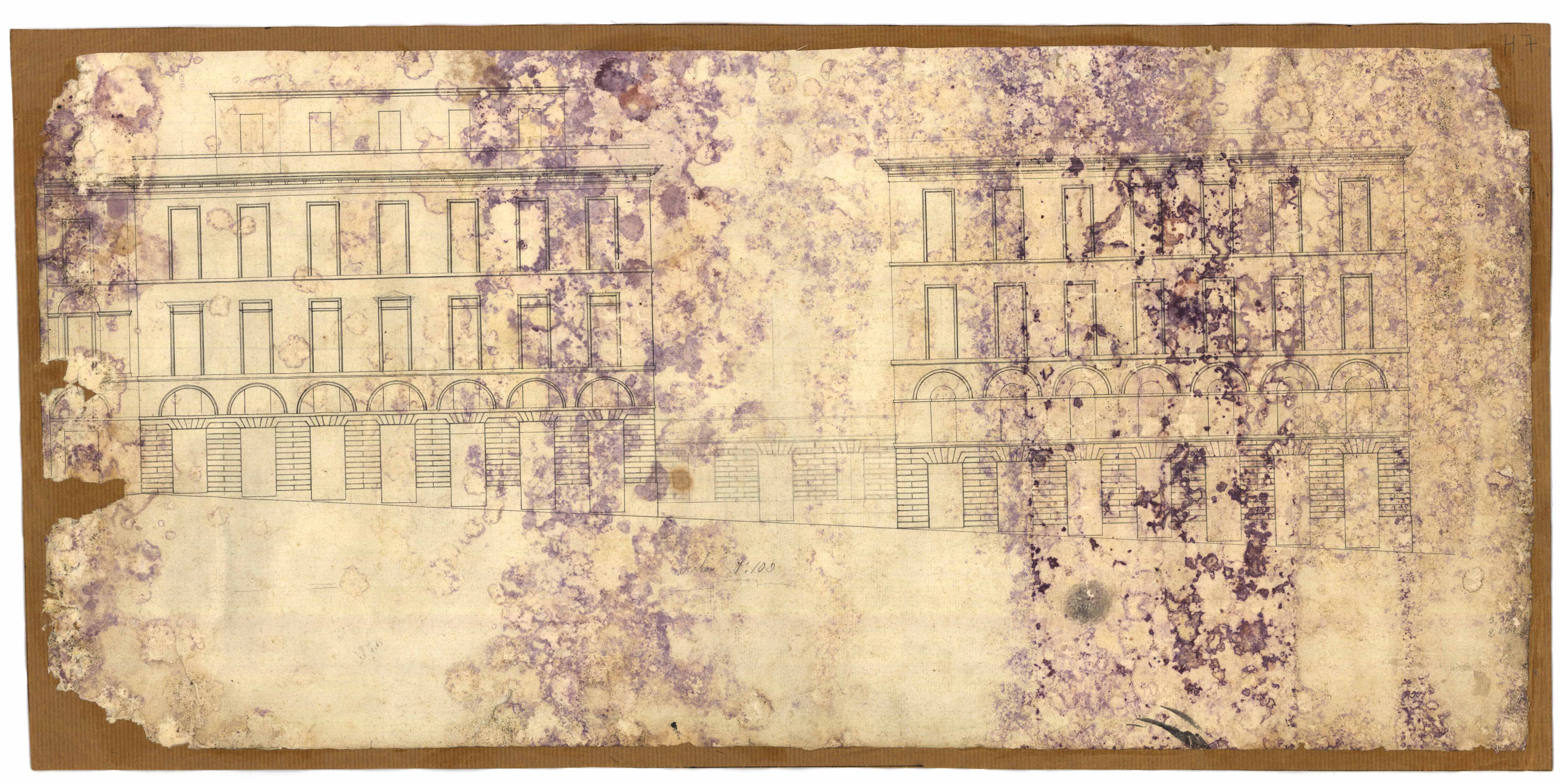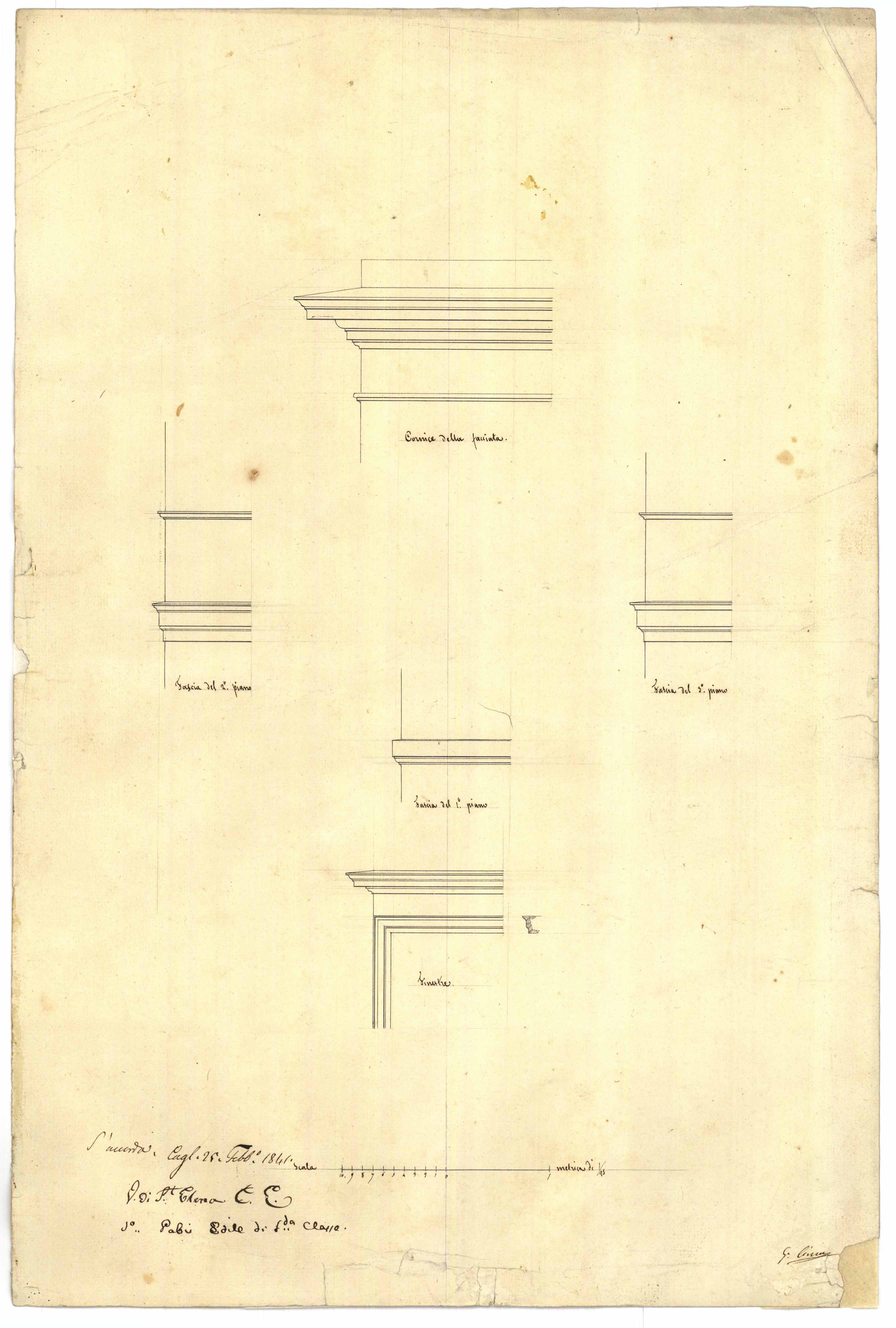 - Disegno della facciata, della fascia del 2° piano, della fascia del 1° piano, della fascia del 3° piano e delle finestre, realizzato nell'ambito del progetto di restauro della palazzina dei fratelli Marini sita nel quartiere Marina.