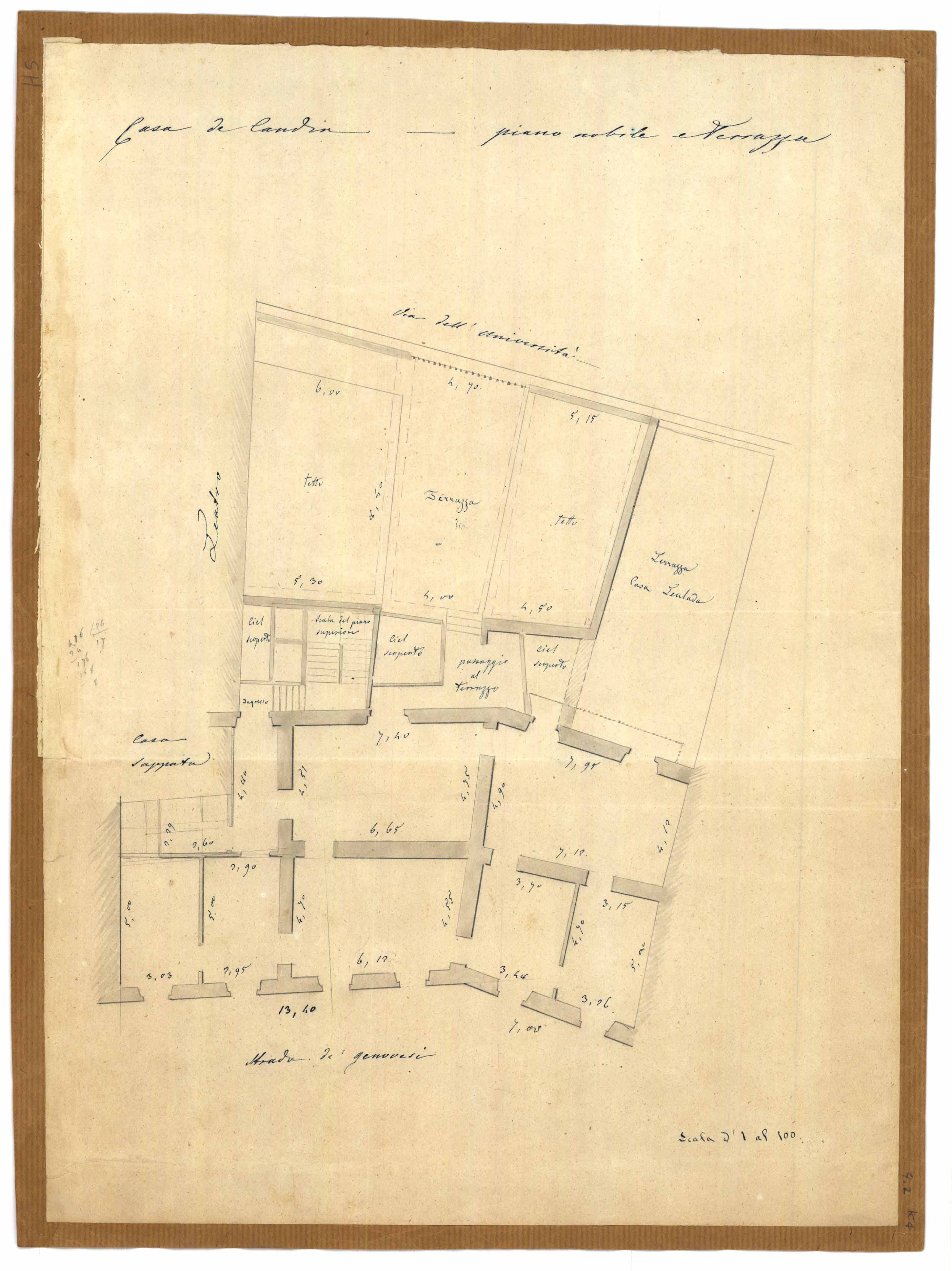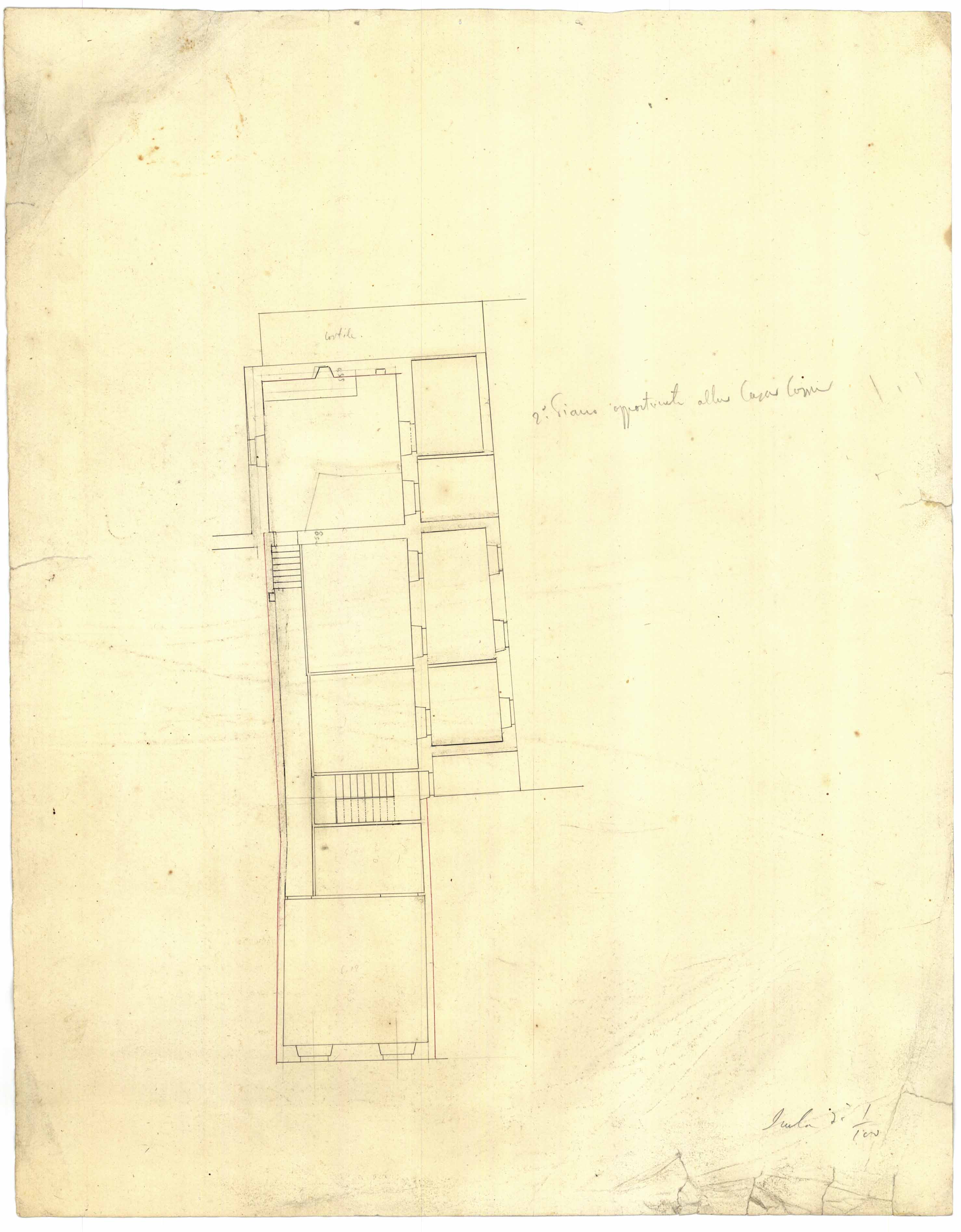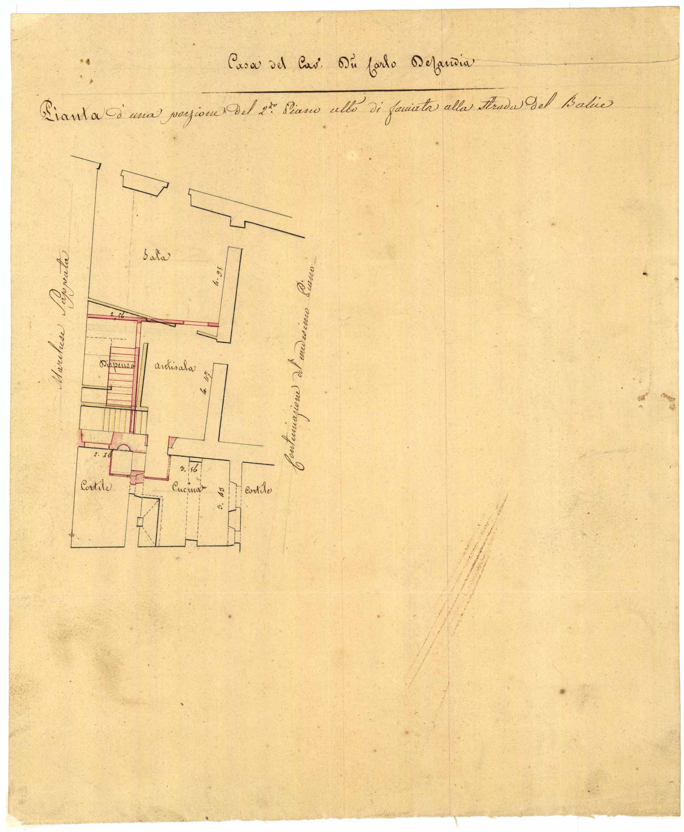 - Casa del Cav. Don Carlo Decandia- Pianta di una porzione del 2° piano alto di facciata alla strada del Balice.