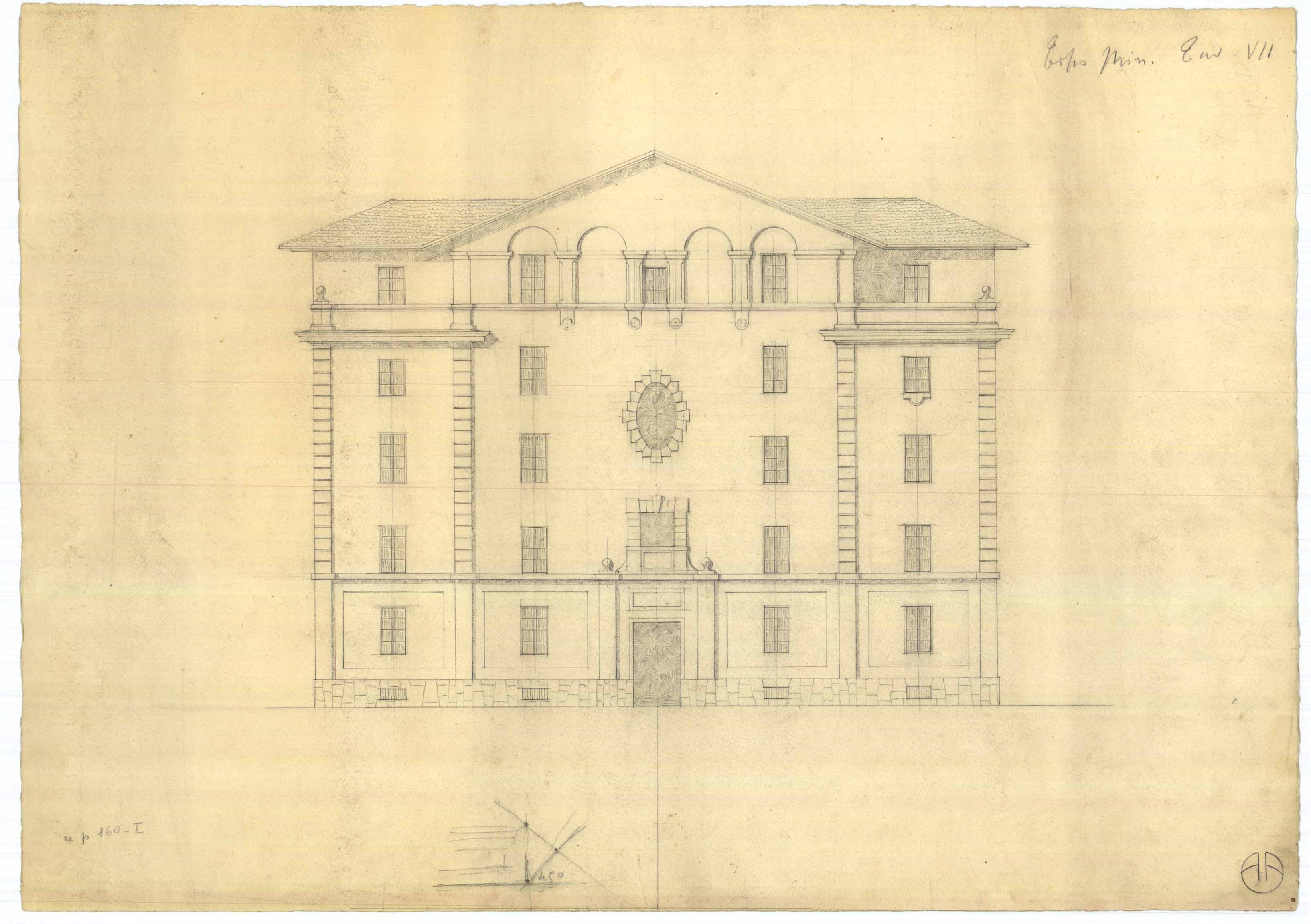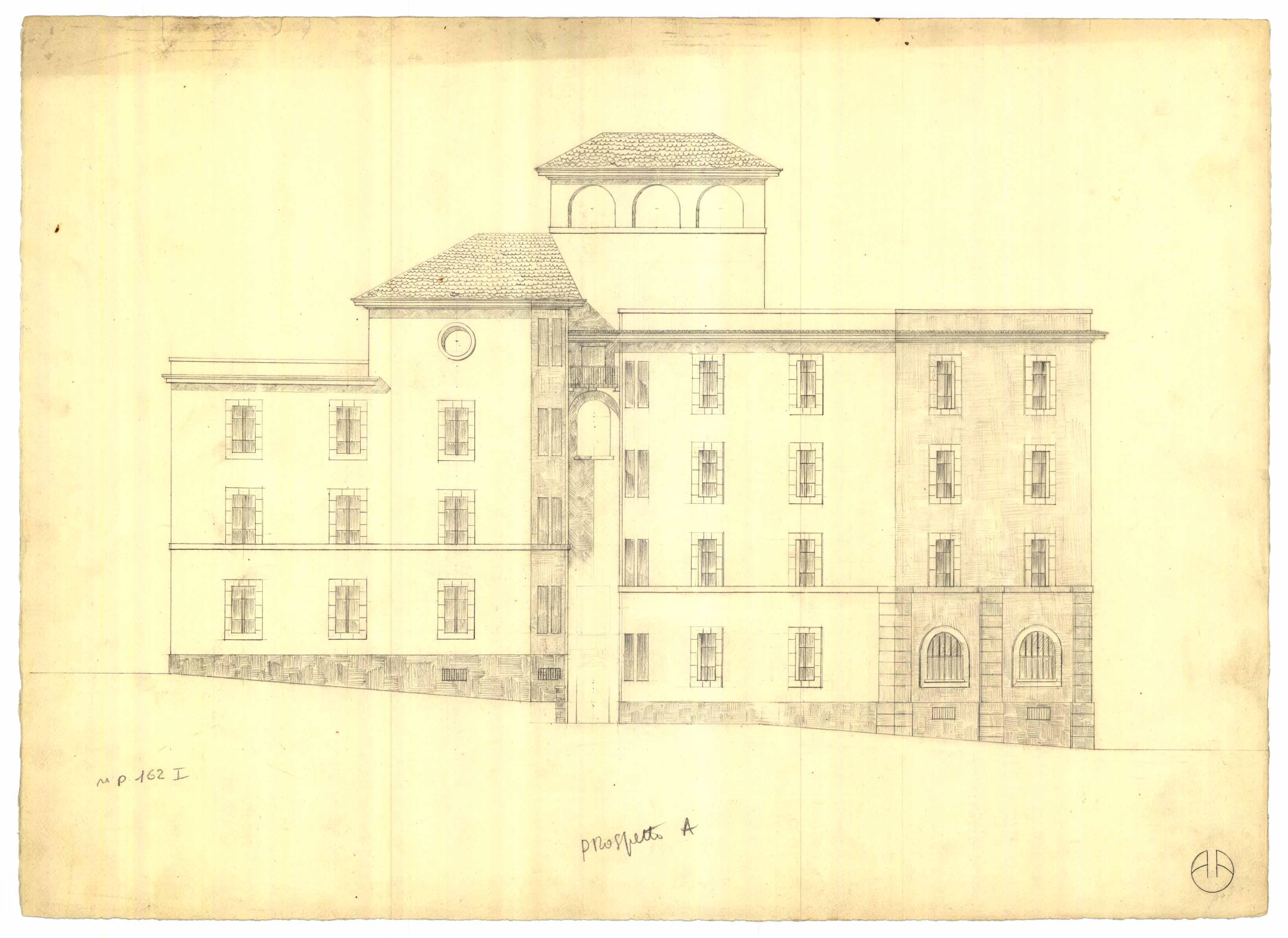 - Disegno in prospetto di un palazzo forse da ritenersi quello Aymerich in castello.