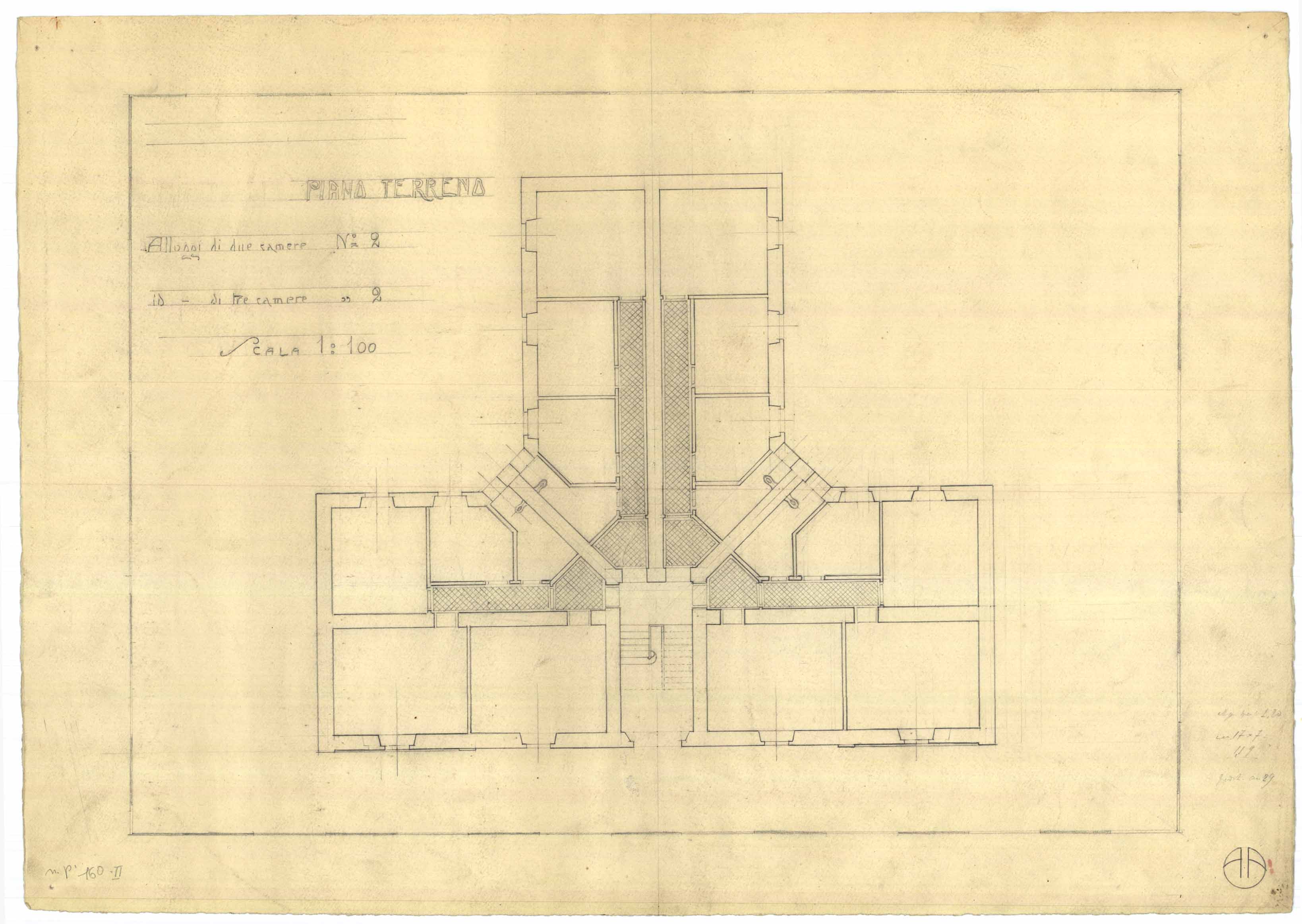 - Disegno planimetrico di una casa popolare da erigersi nella zona di Via Firenze.