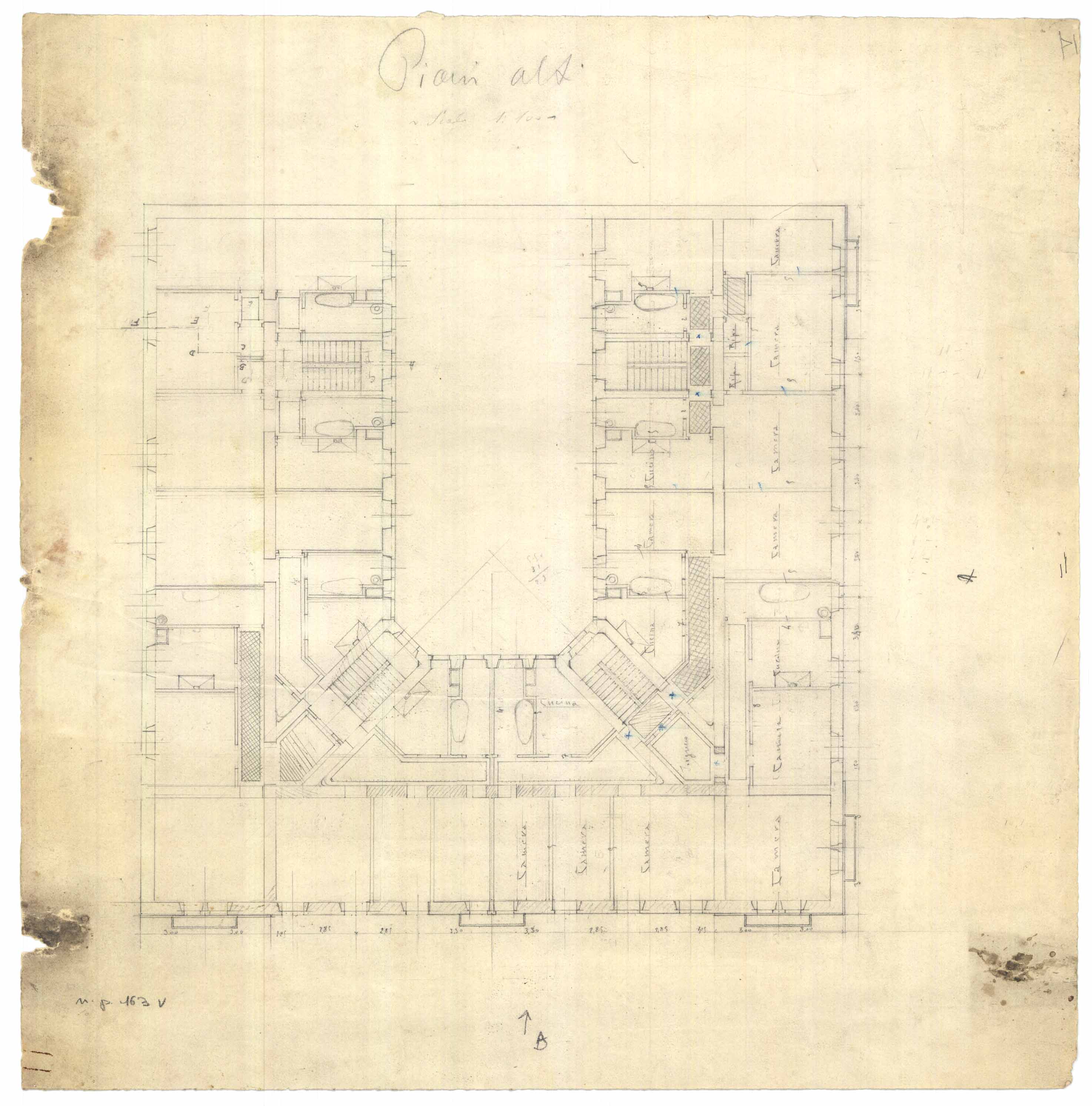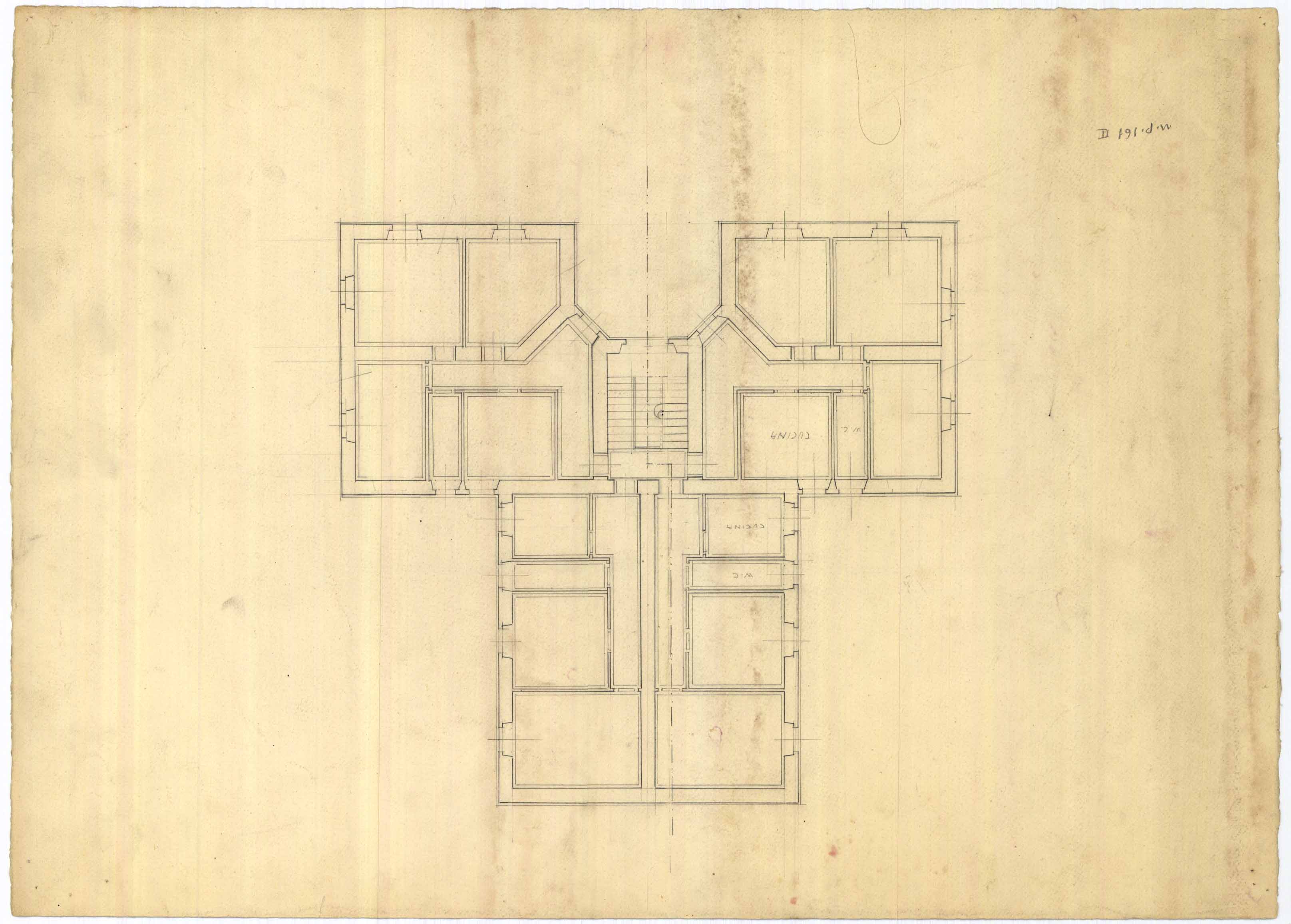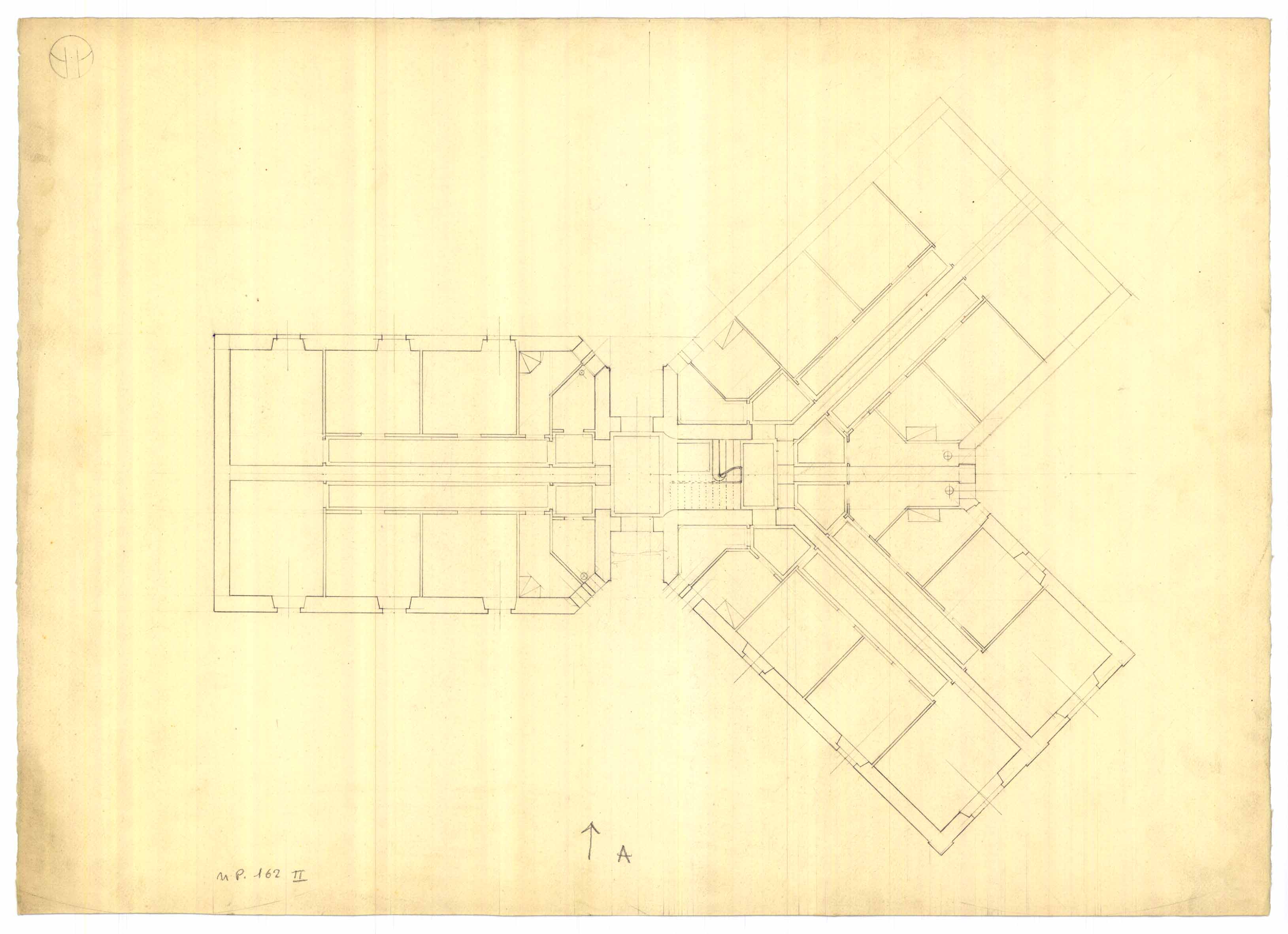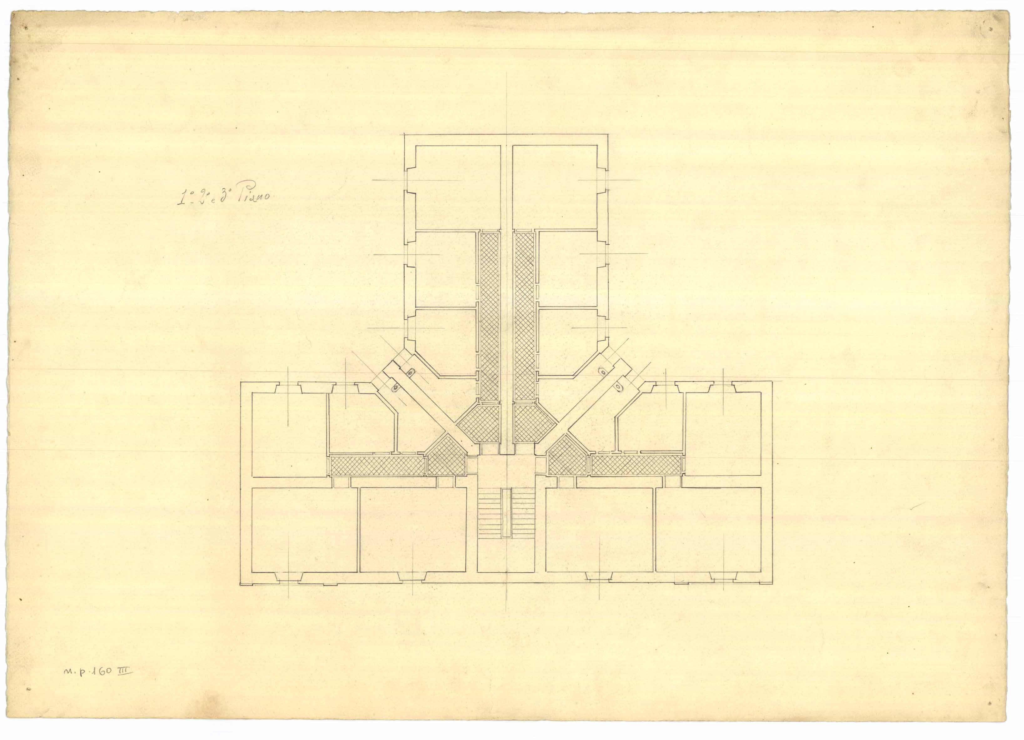 - Disegno della planimetria del piano primo di una casa popolare da erigersi nella zona di Via Firenze.