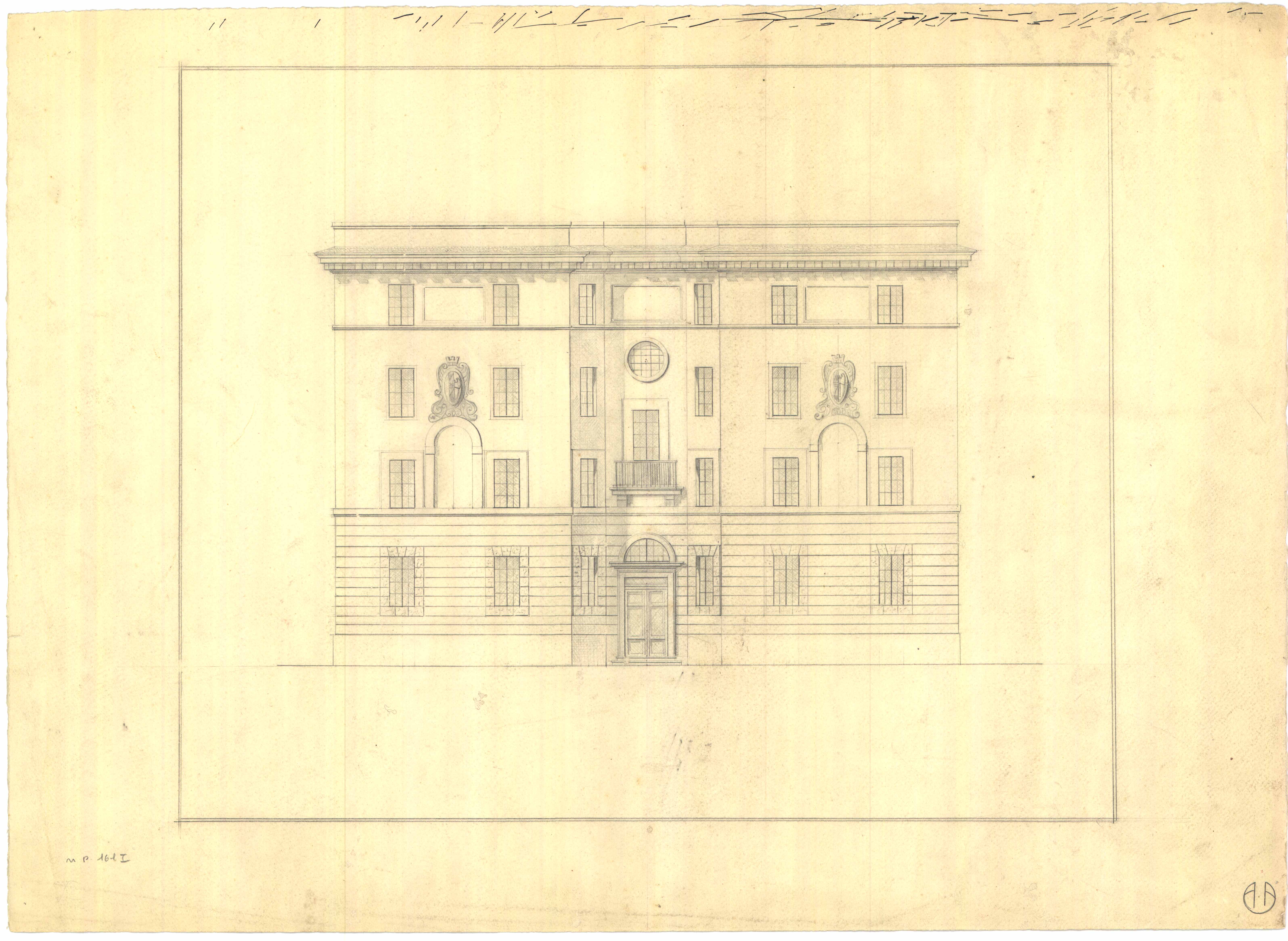 - Disegno del prospetto e della pianta di un palazzo.