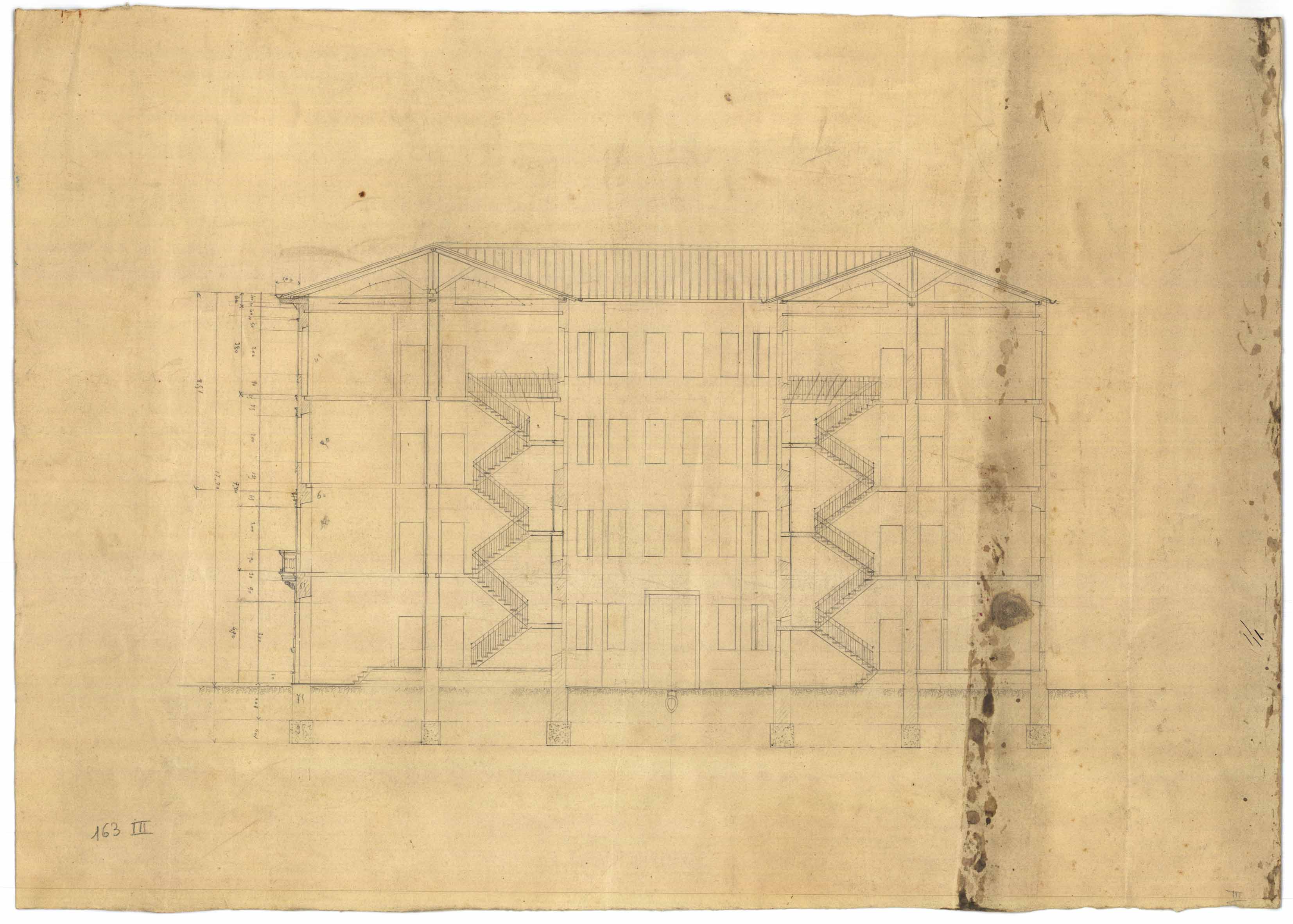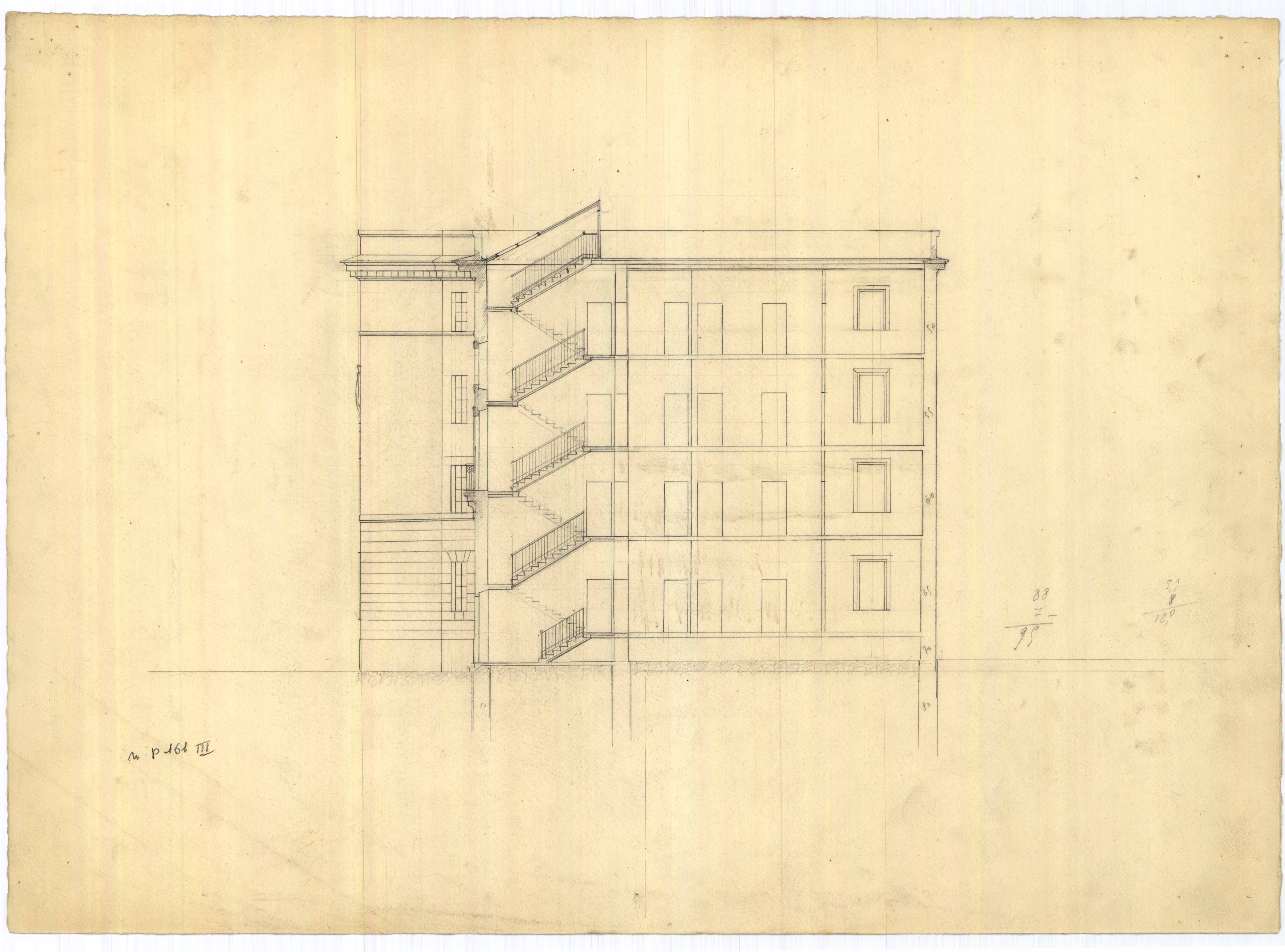 - Disegno della sezione di una casa popolare con scale da erigersi nella zona di Via Firenze.