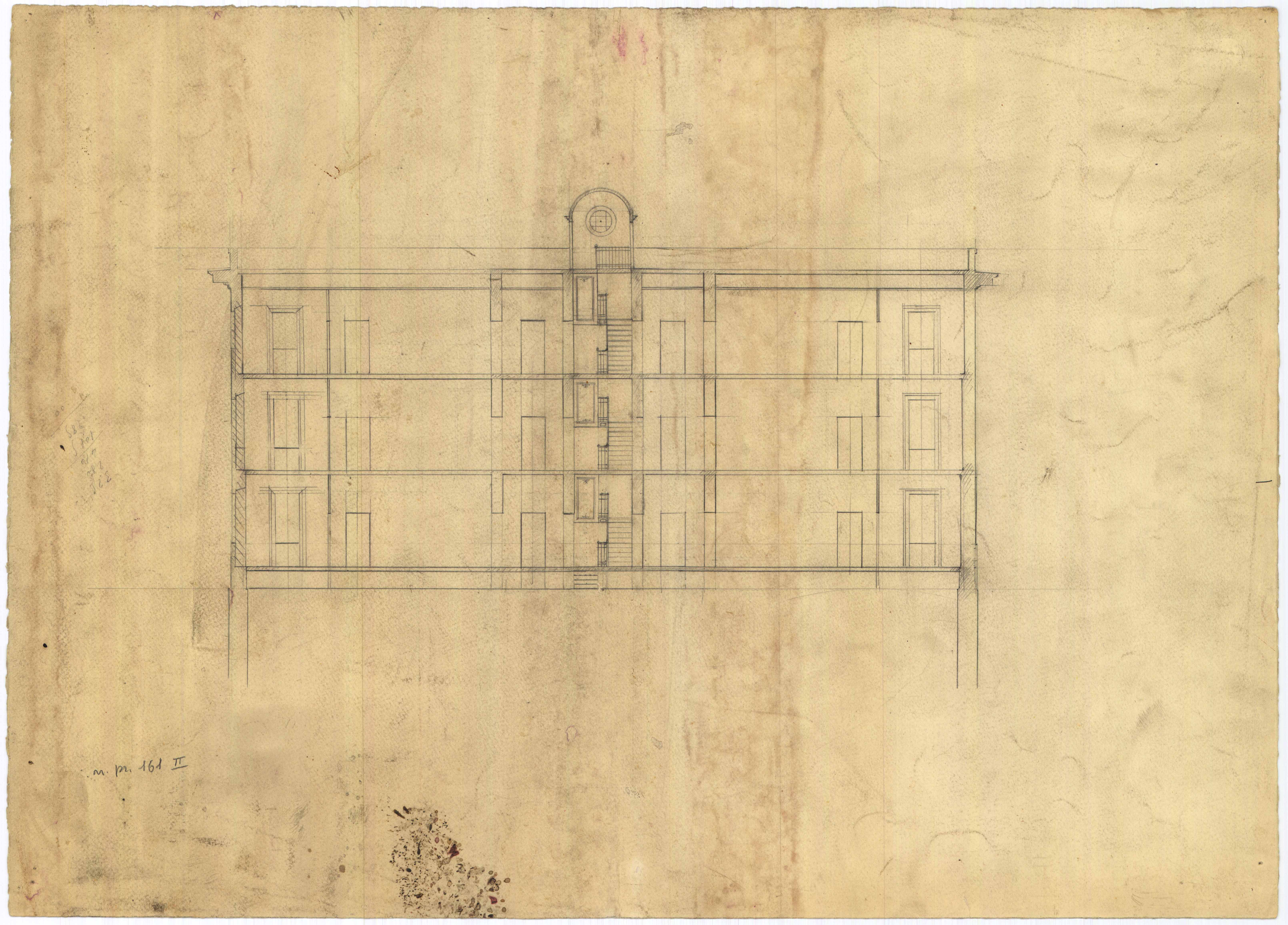 - Disegno della sezione longitudinale di una casa popolare da erigersi nella zona di Via Firenze.