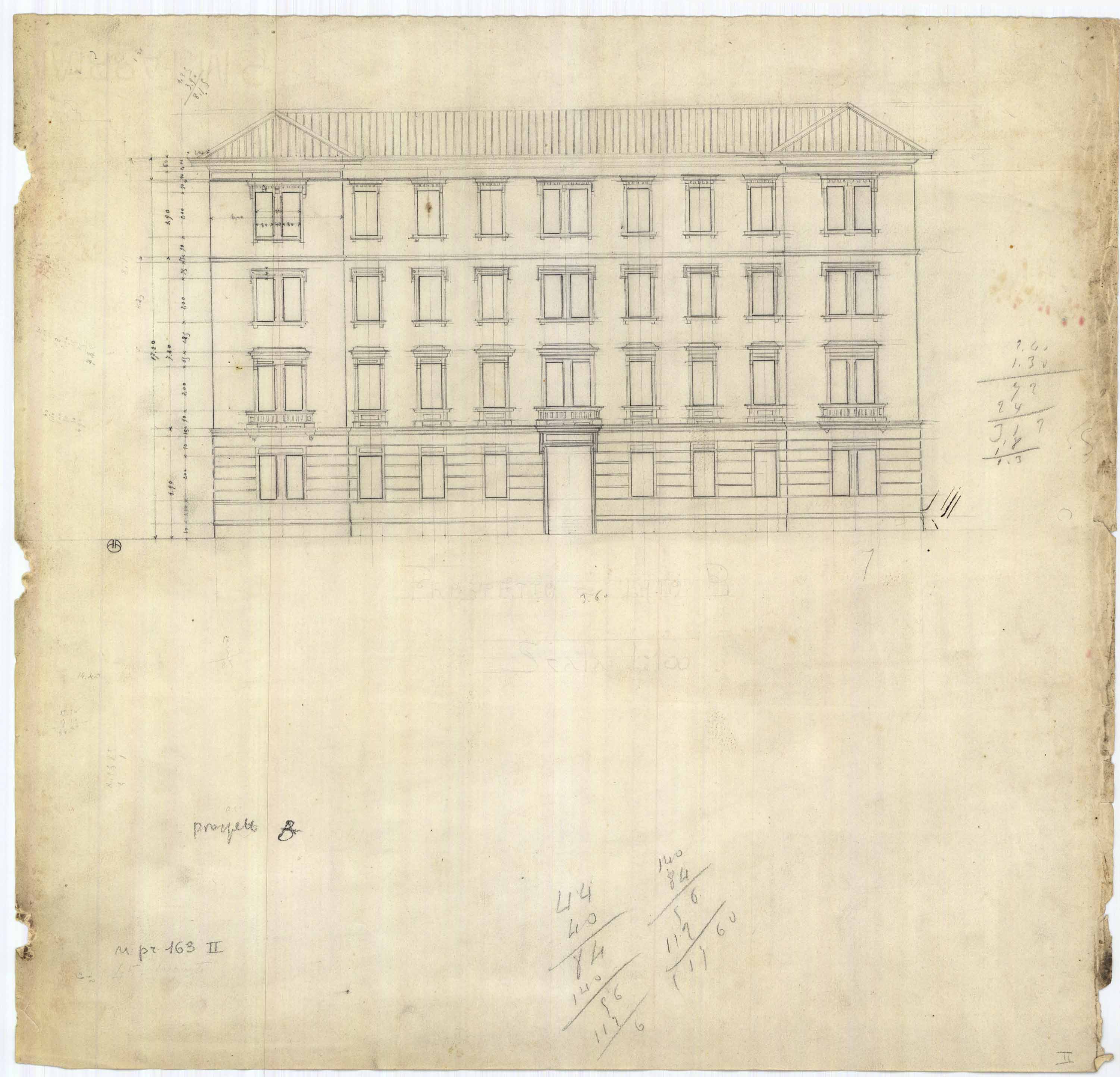 - Disegno della facciata di una casa popolare da erigersi nella zona di Via Firenze.