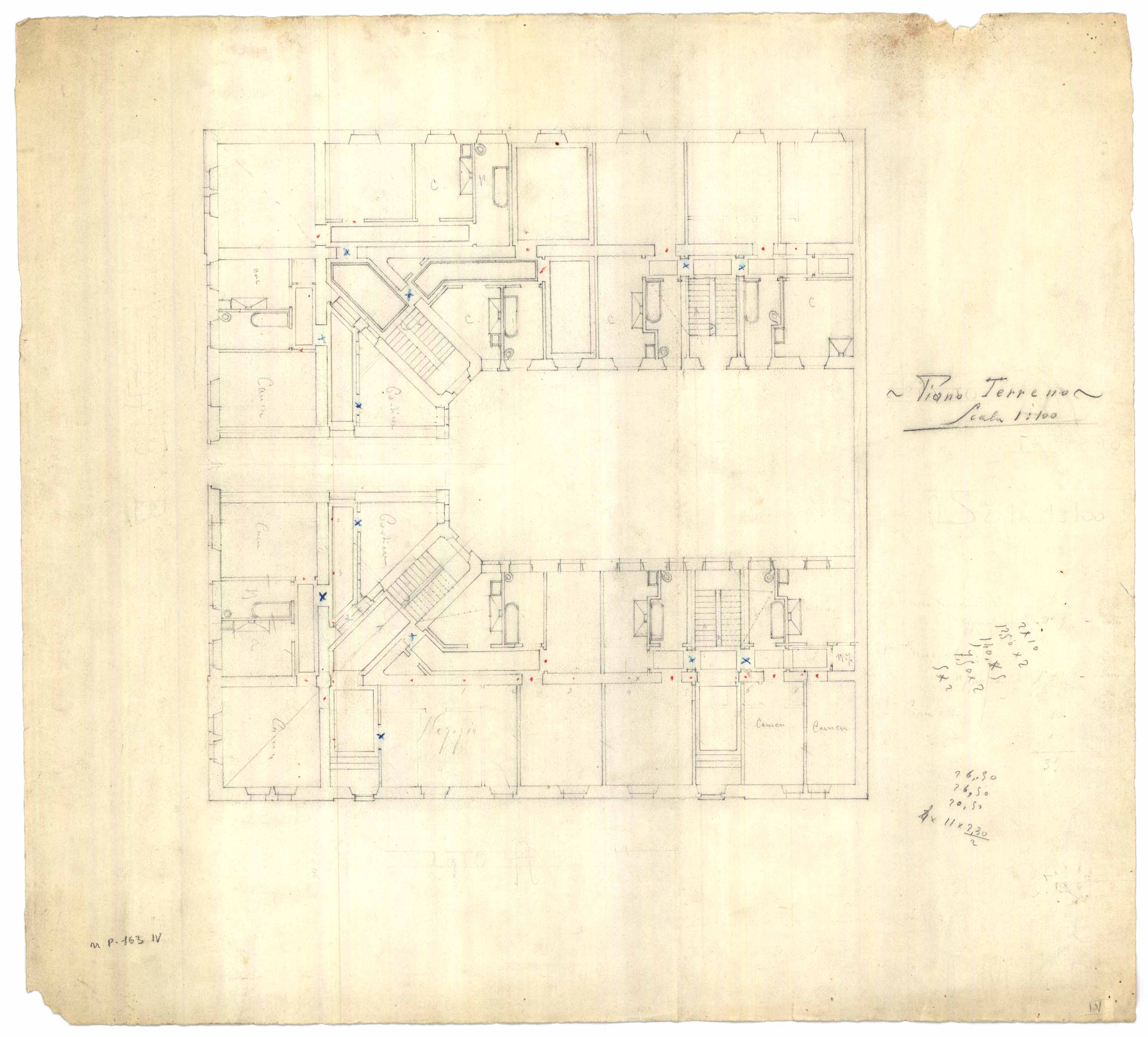 - Disegno planimetrico del piano terra di una casa popolare da erigersi nella zona di Via Firenze.
