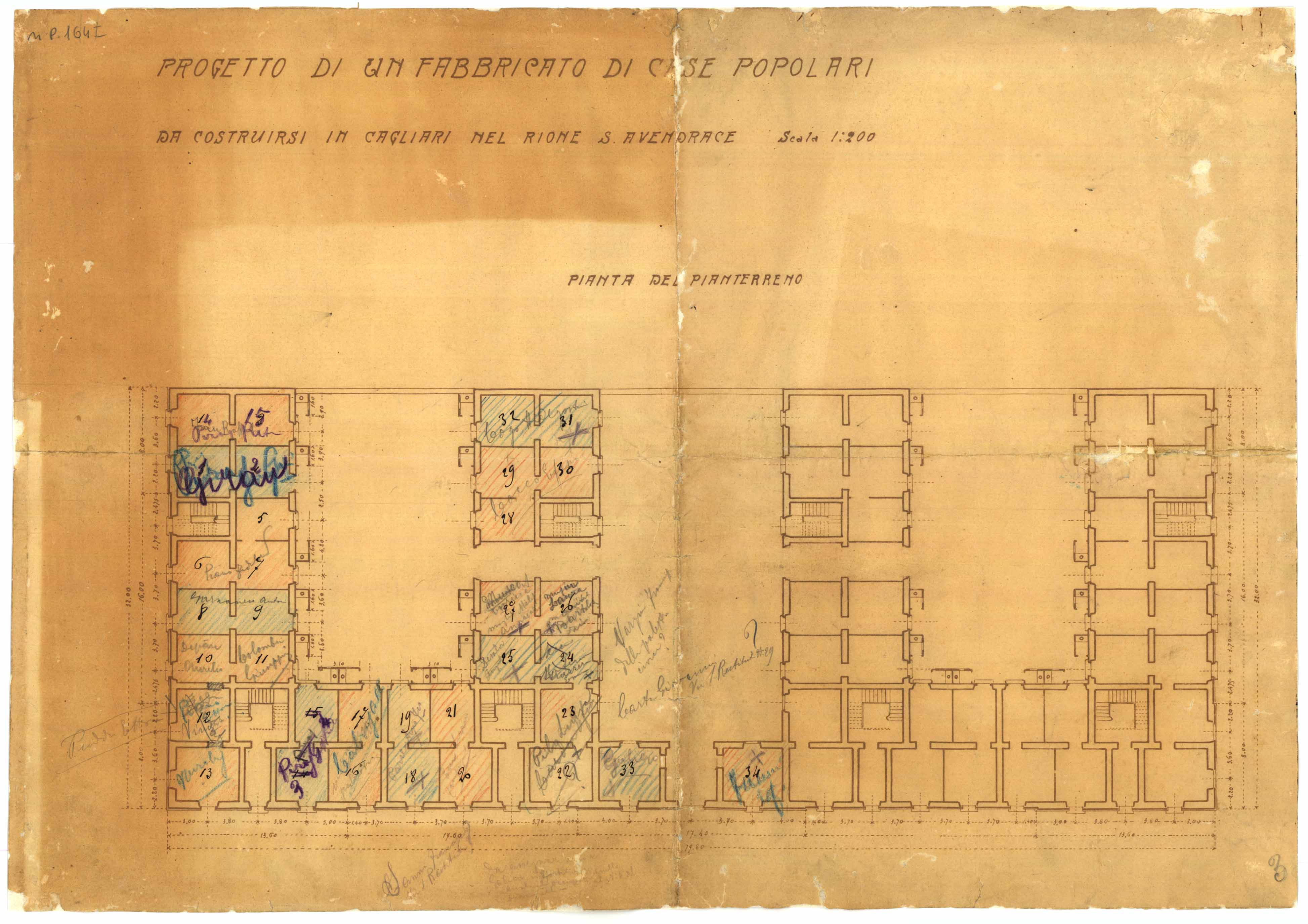 - Progetto di un fabbricato di case popolari da costruirsi in Cagliari nel rione S. Avendrace -pianta del pianterreno