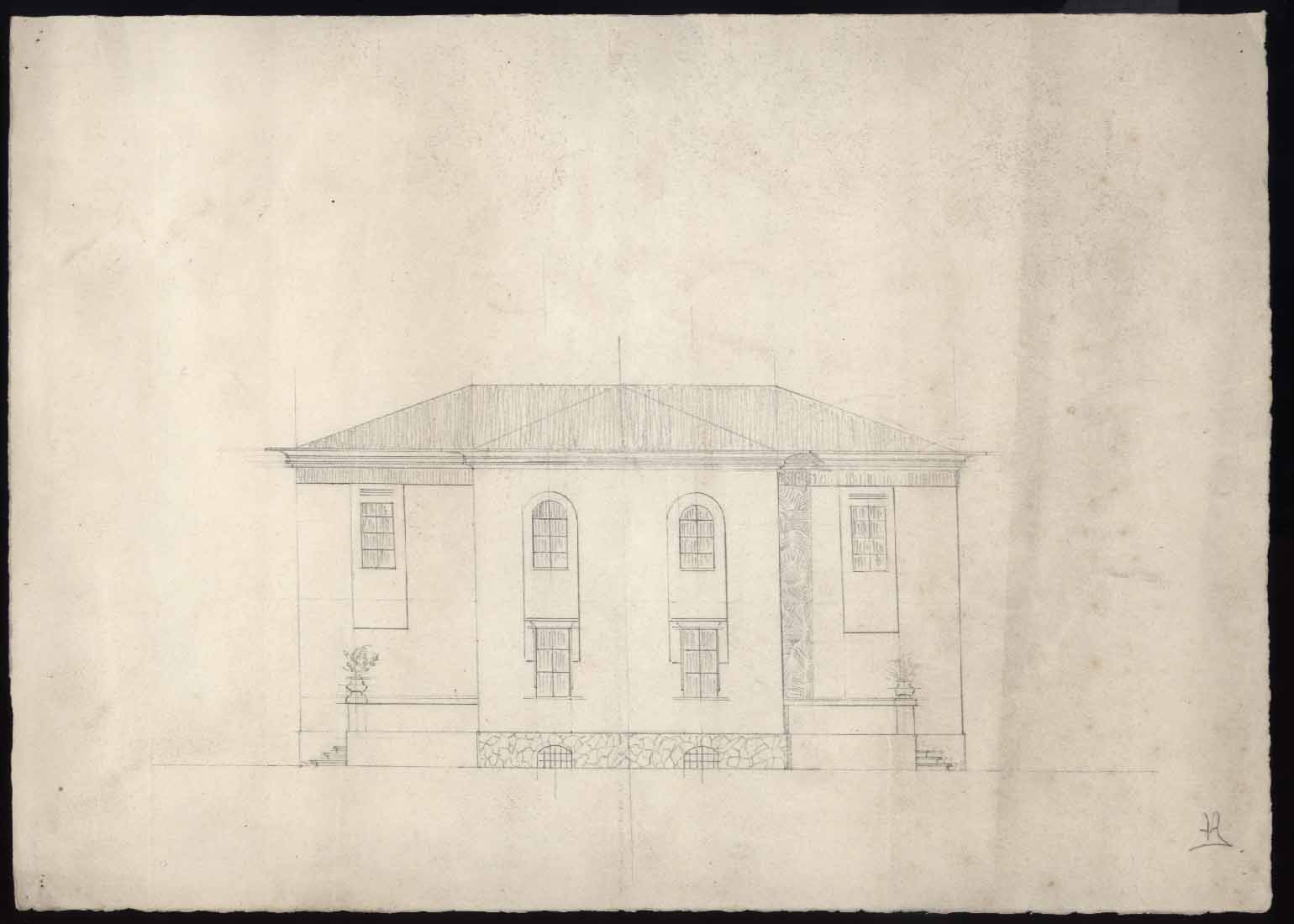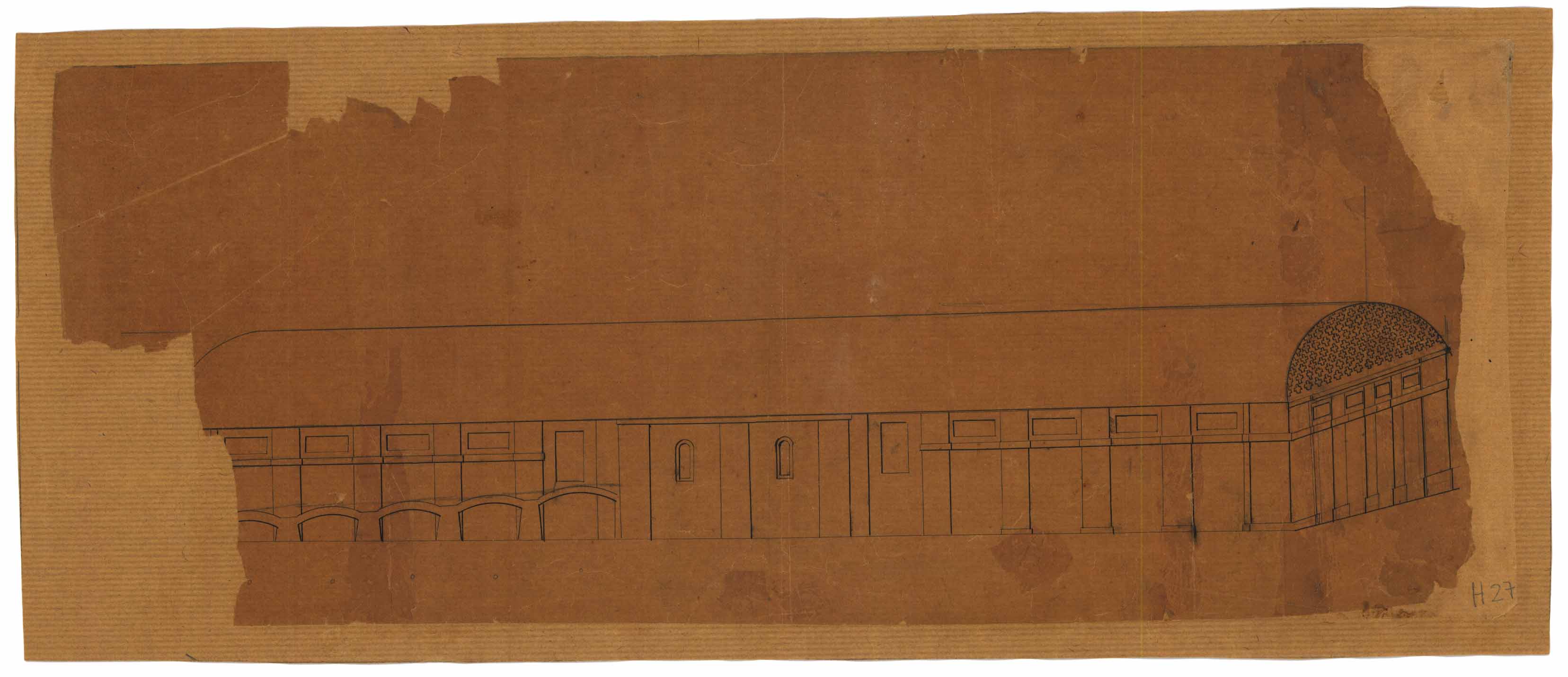 - Schizzo del prospetto di un edificio per uso industriale (?)