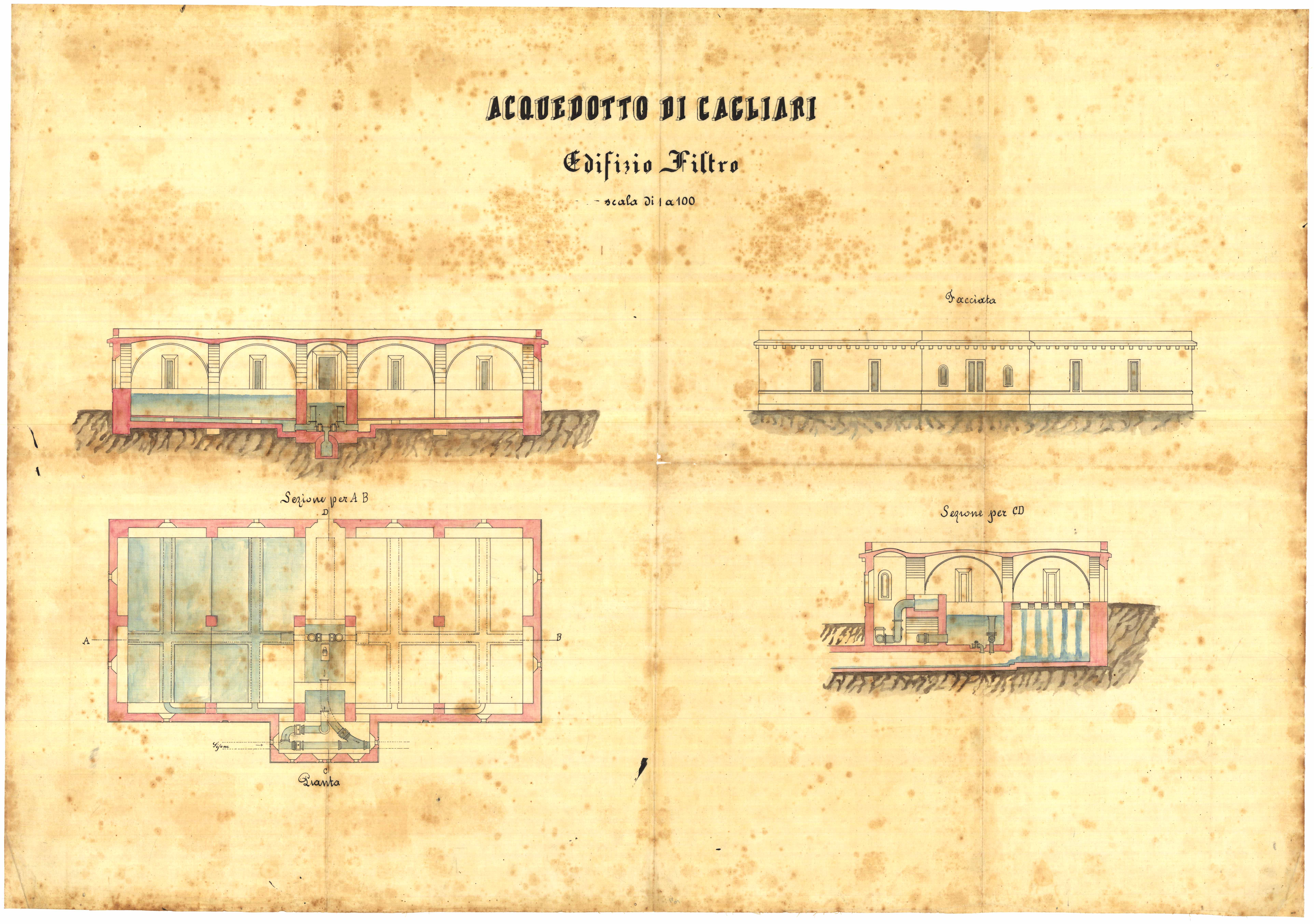 - Disegno progettuale della struttura di filtrazione dell'acquedotto di Cagliari.