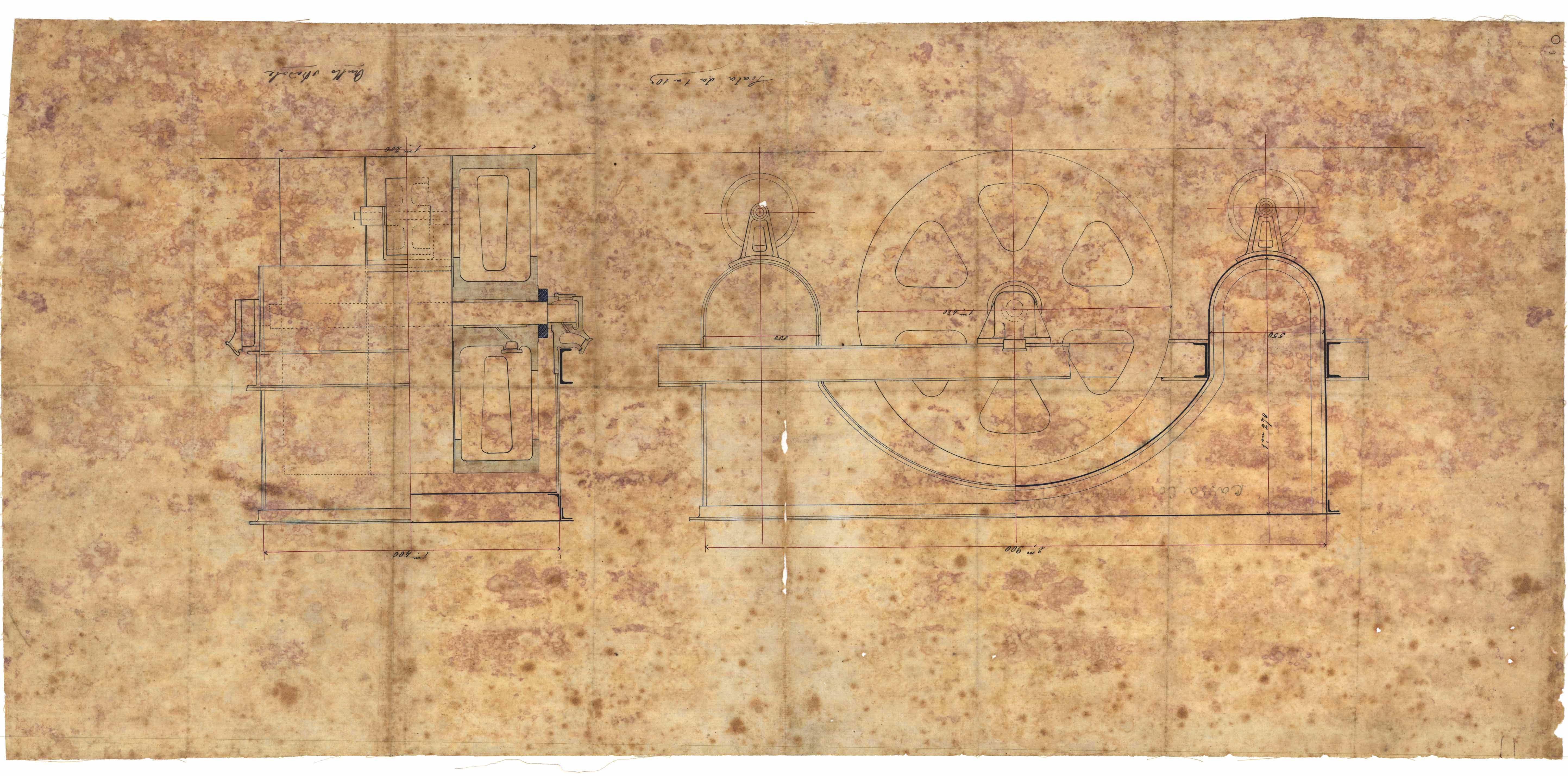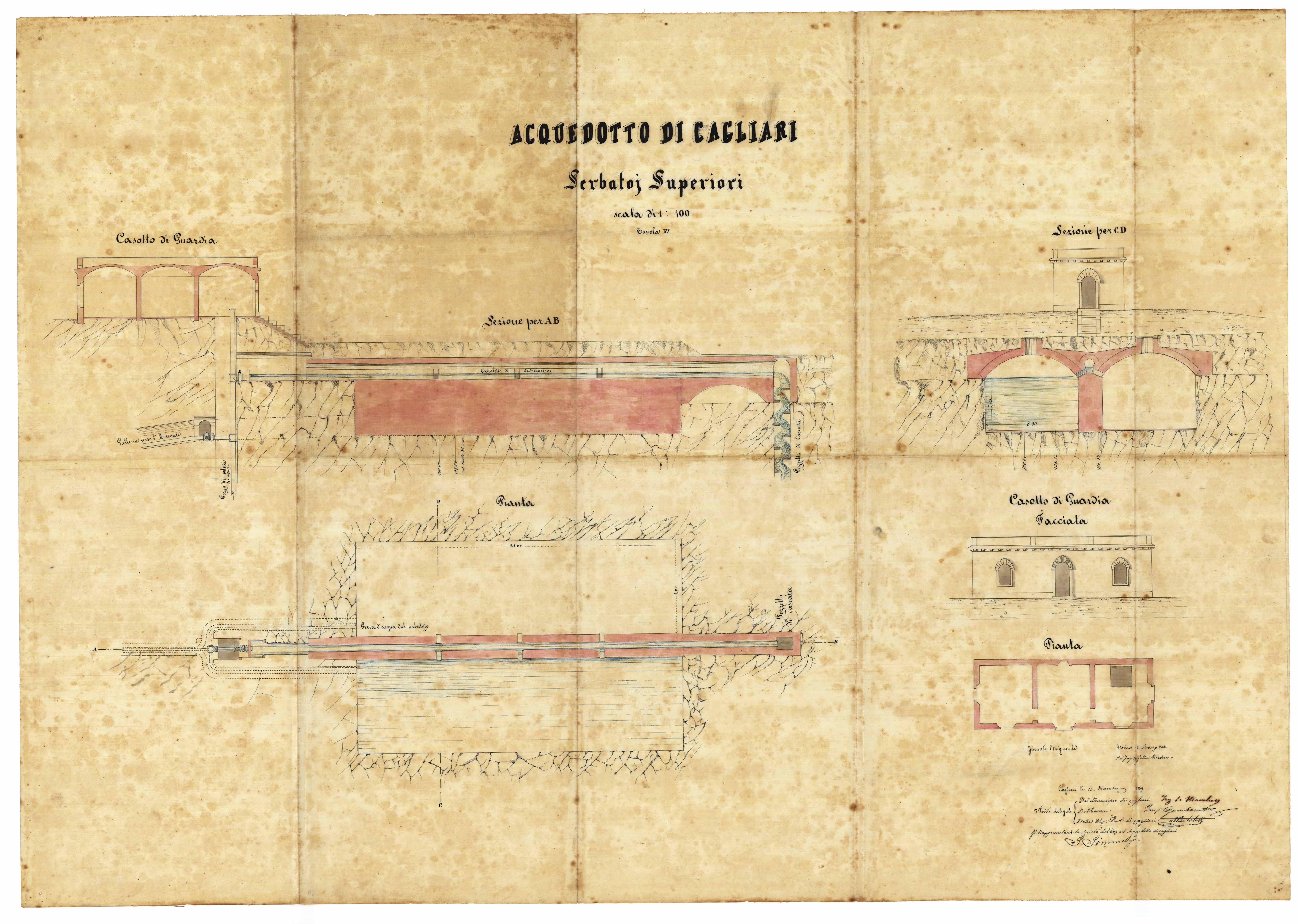 - Disegno in sezione e in pianta dei serbatoi Superiori dell'acquedotto di Cagliari