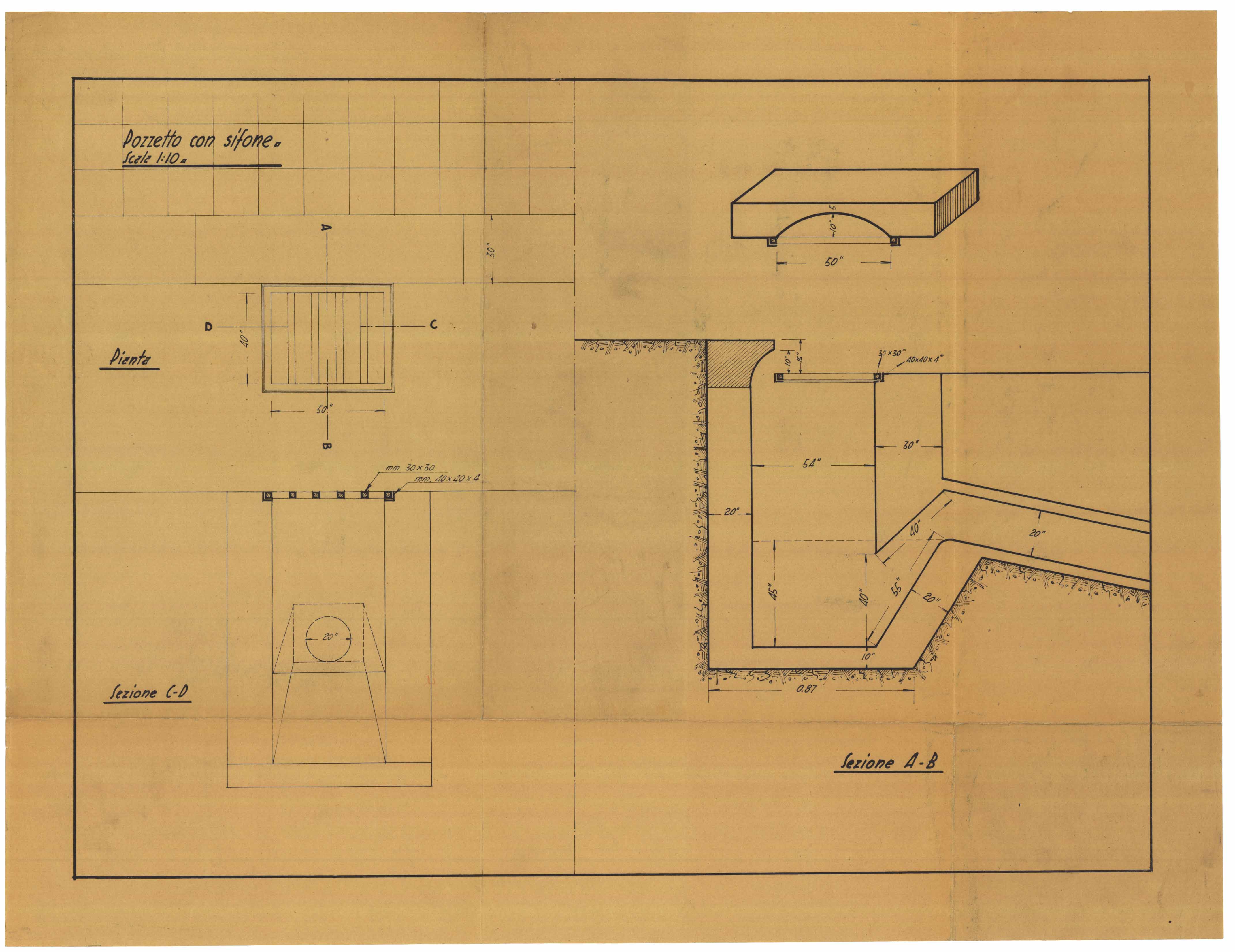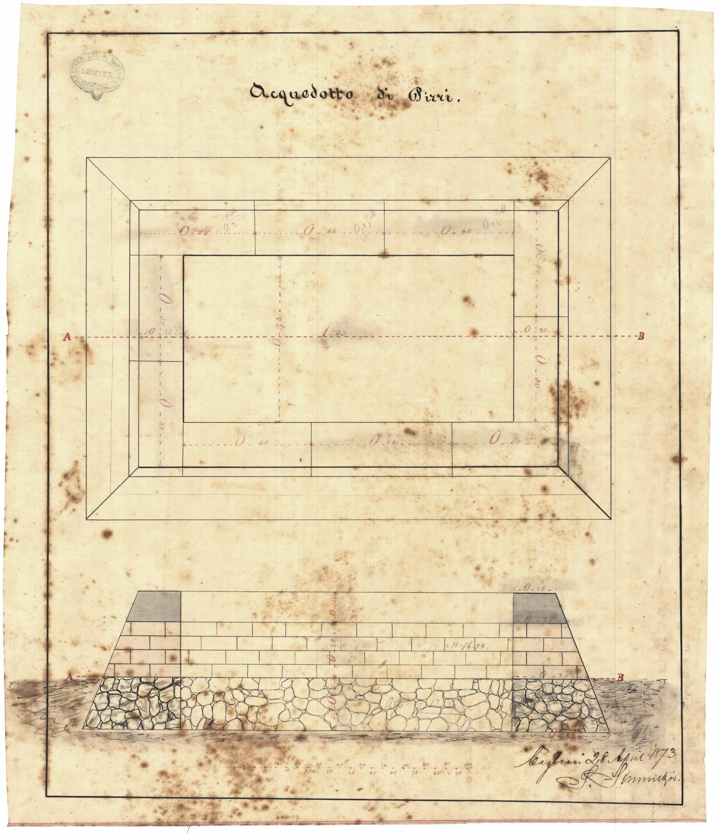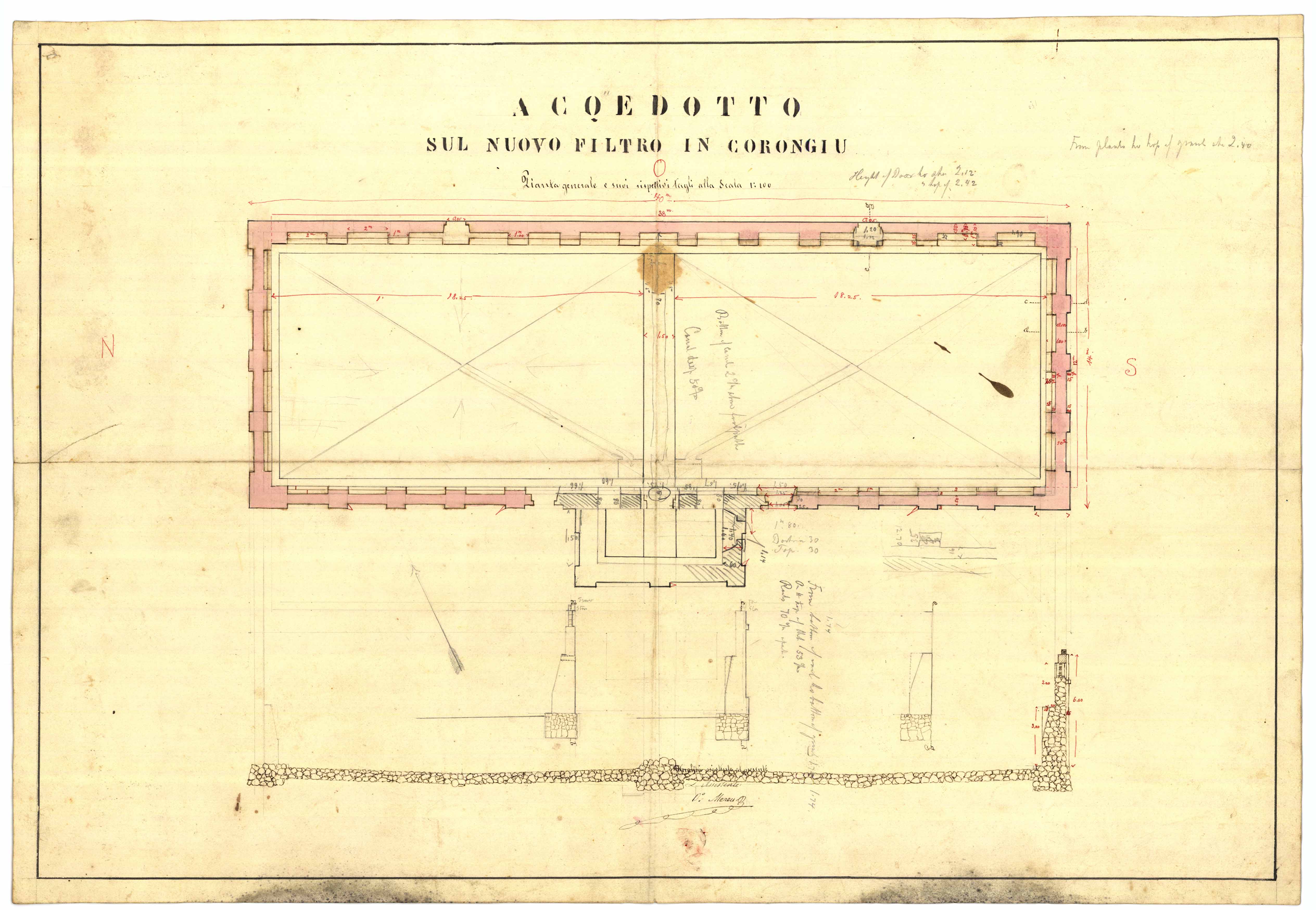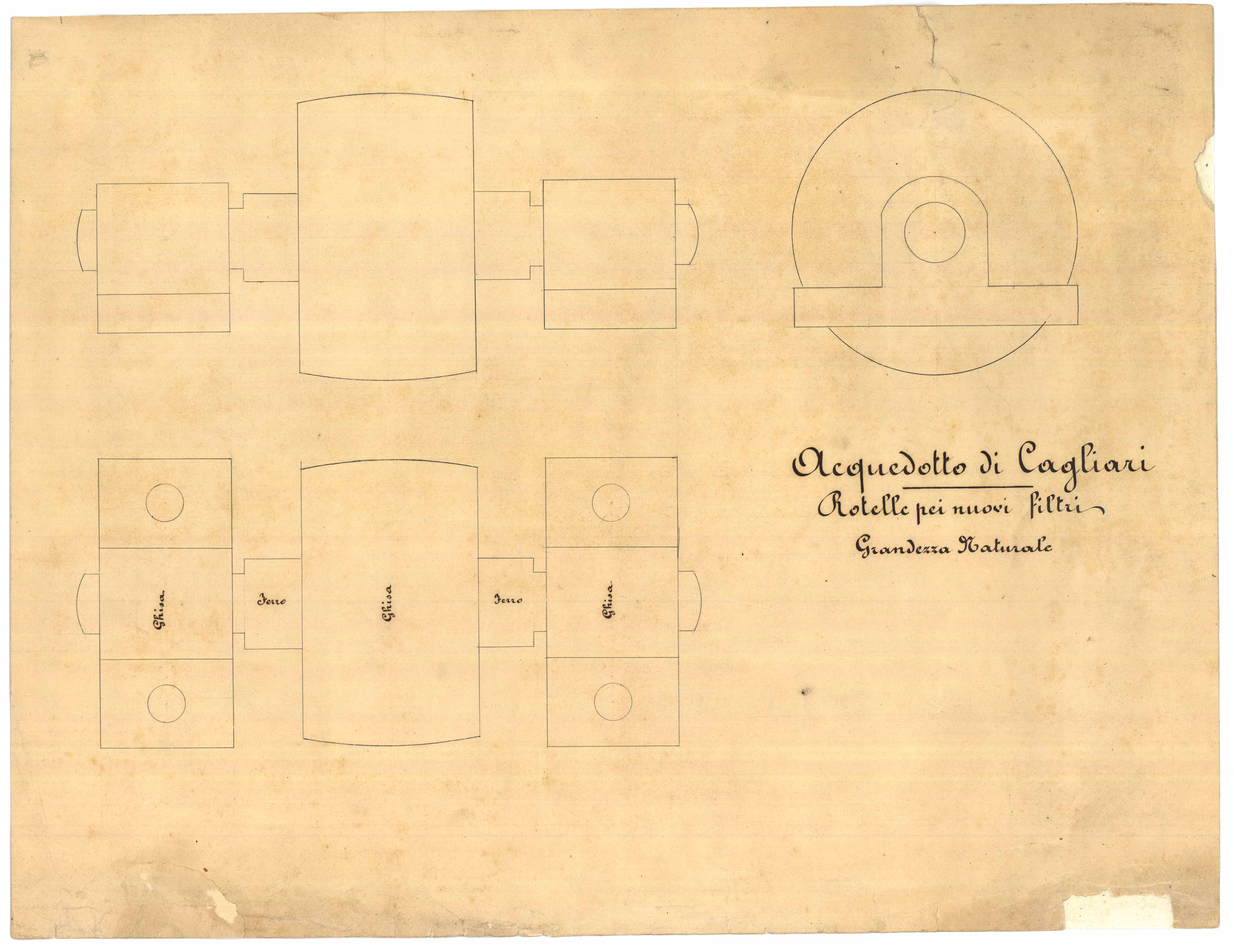 - Disegno in sezione e in pianta di un filtro dell'acquedotto di Cagliari a Corongiu.