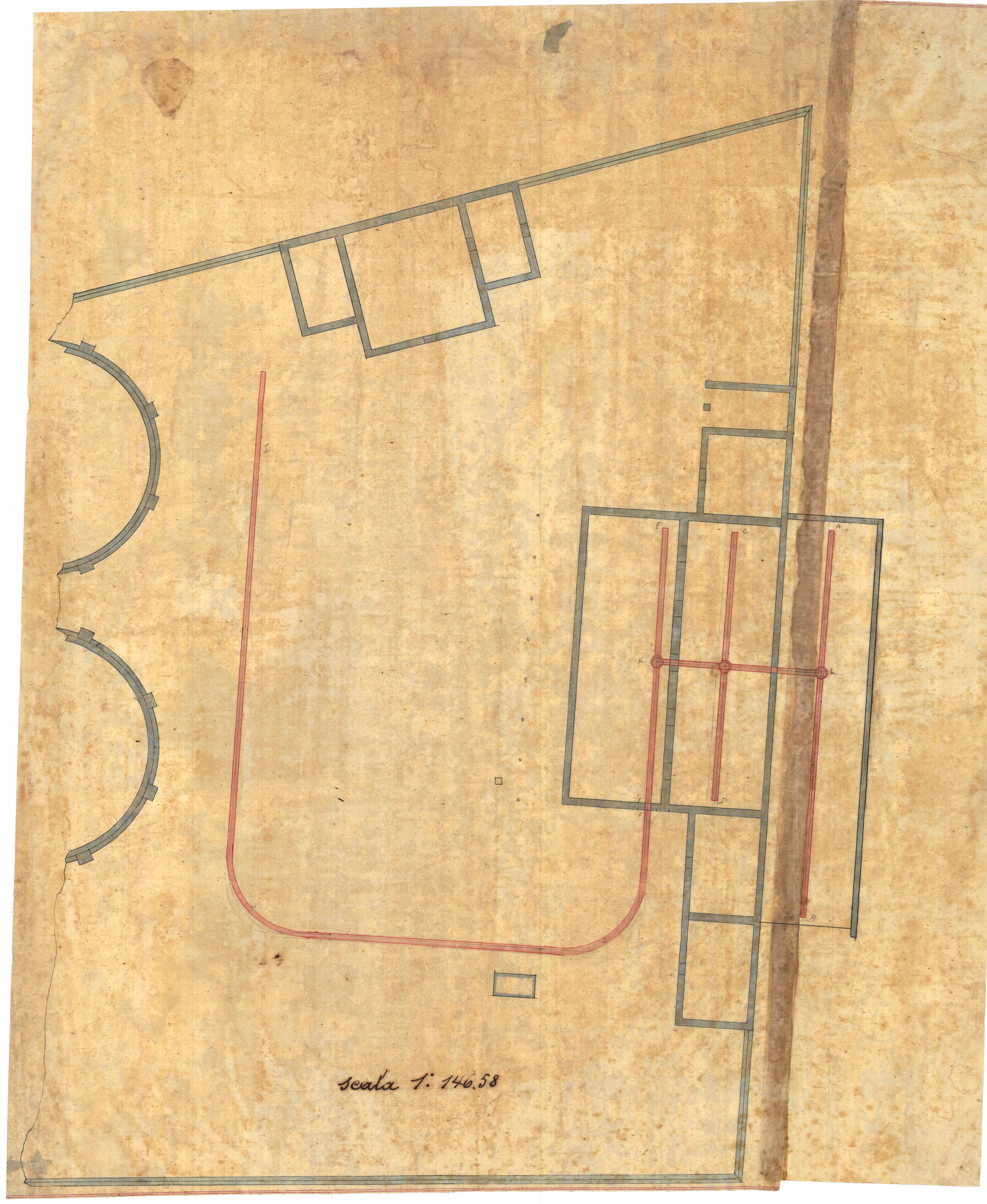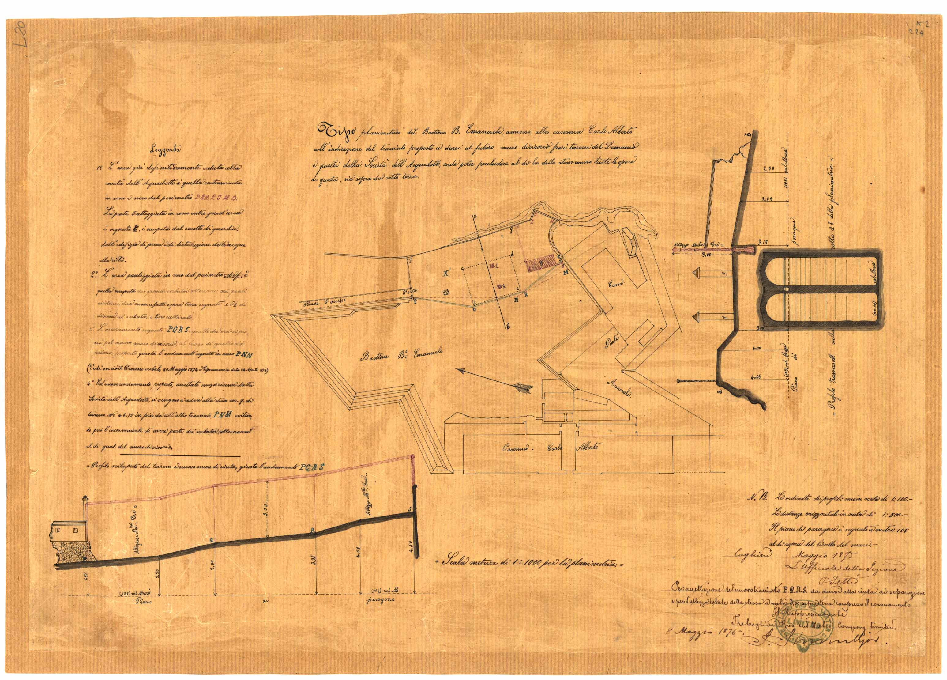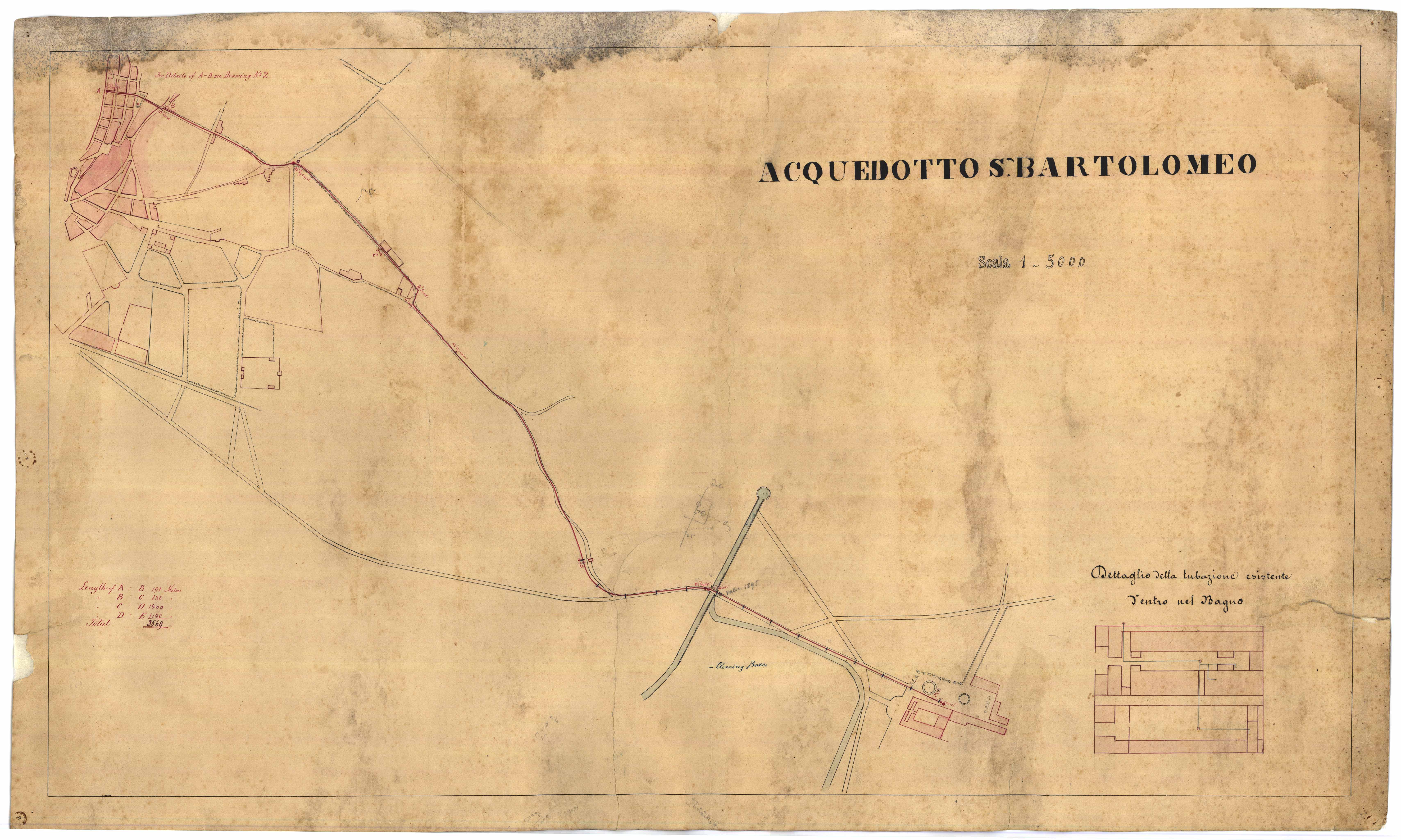 - Disegno planimetrico dell'area relativa a S. Bartolomeo con l'indicazione in generale e nel dettaglio della conduttura dell'acqua.