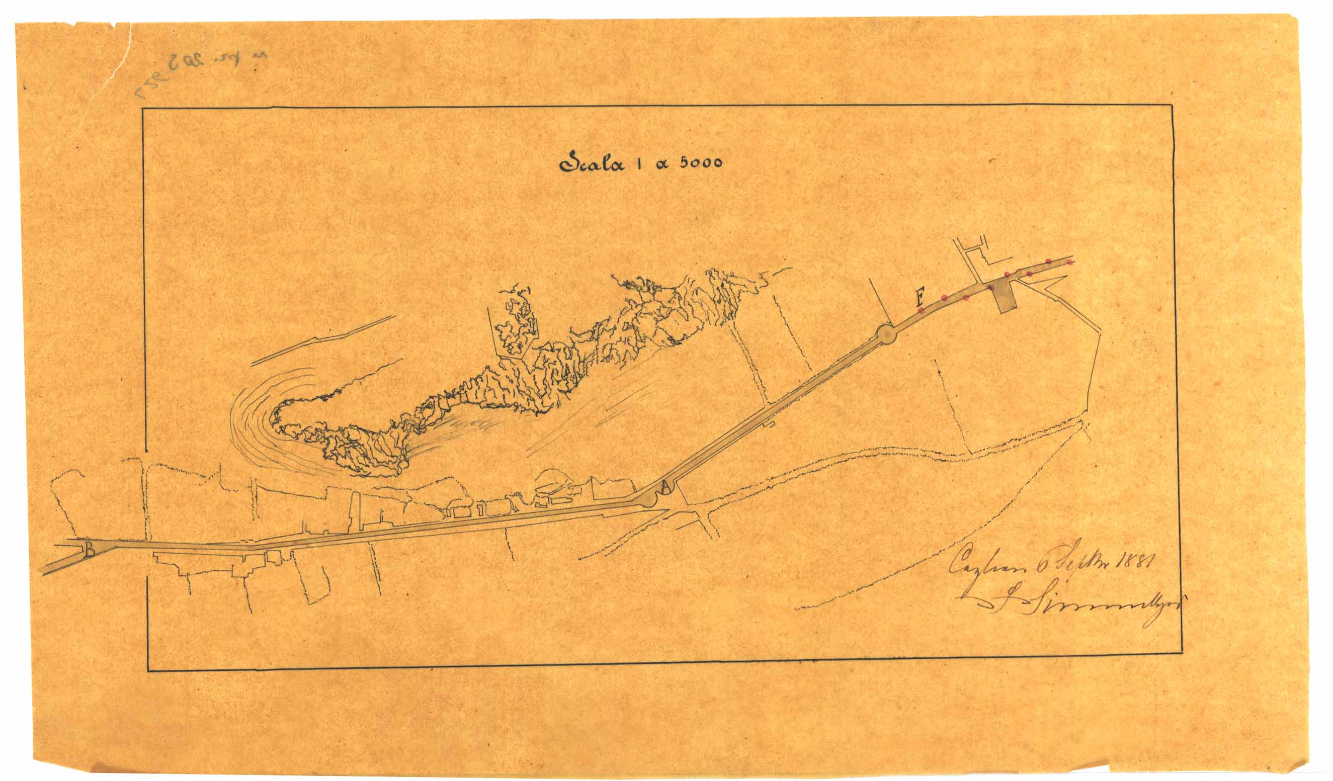 - Planimetria generale della linea dell'acquedotto dal bacino in montagna sino alla città.