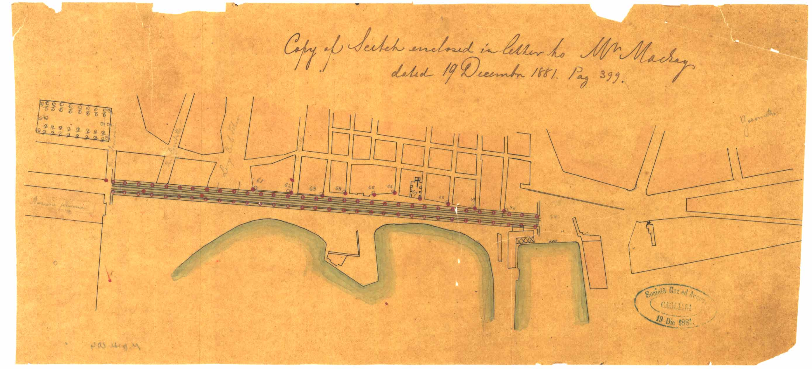 - Cagliari Gas Works-plan of town-shewing main pipes