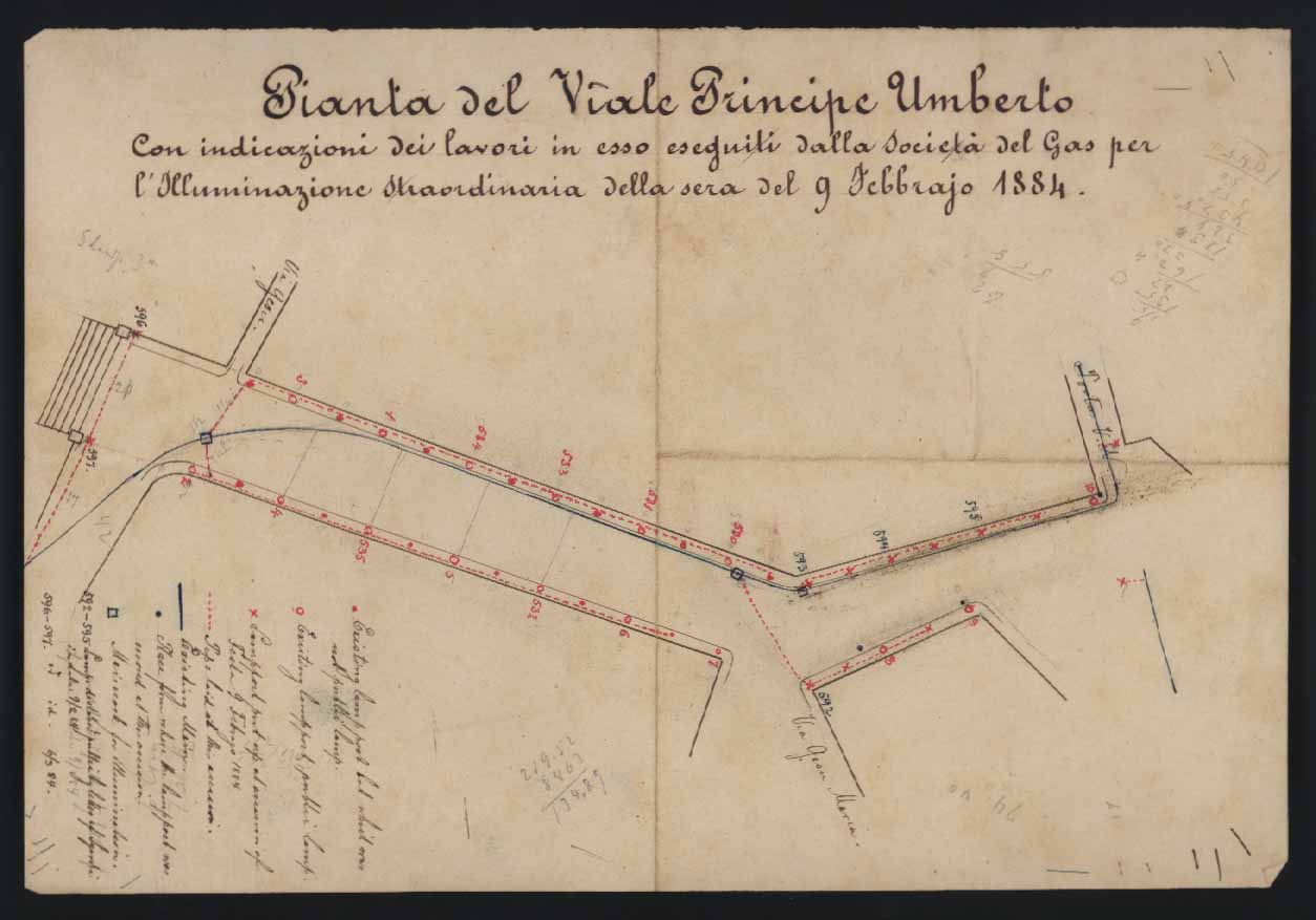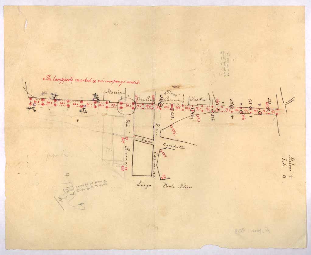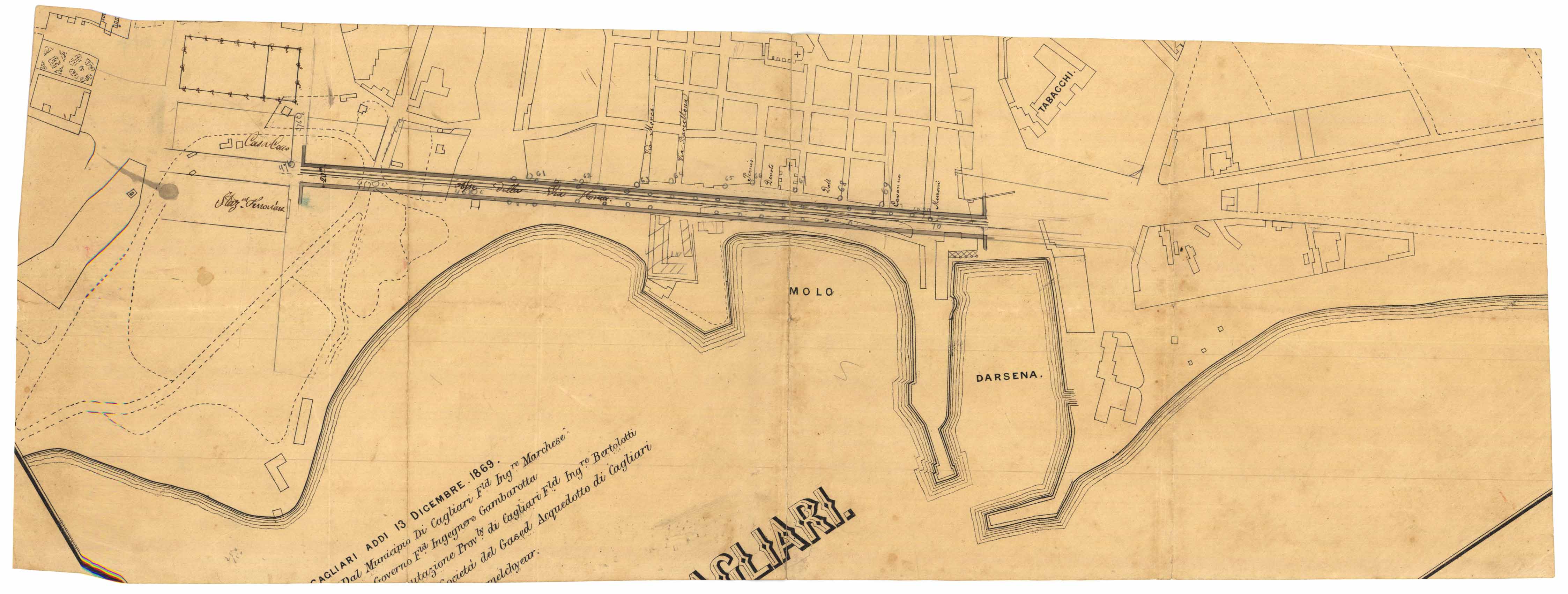 - Plan of the Town of Cagliari, with the project of the distribution of the gas lampes for illuminating