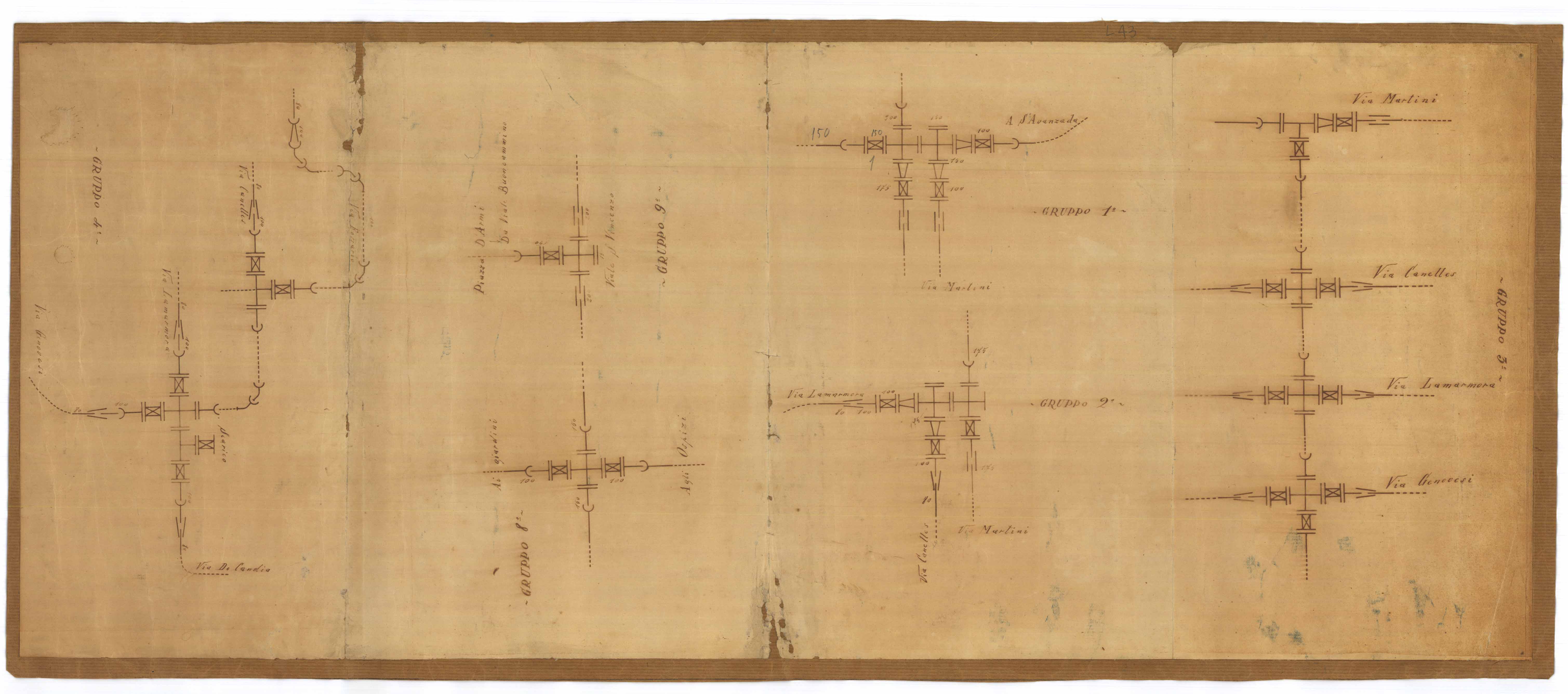 - Planimetria del quartiere con la rete idrica dell'acquedotto.