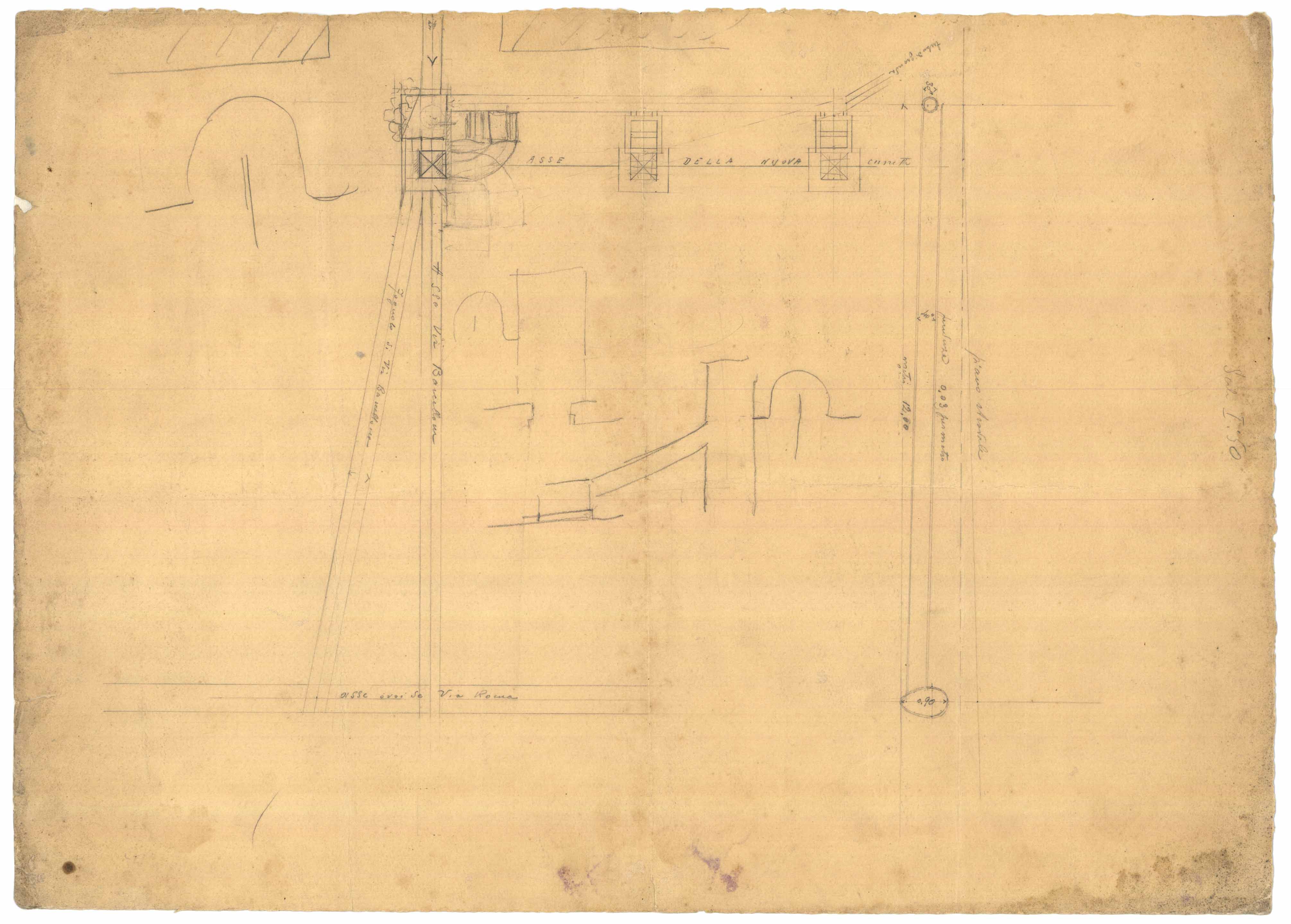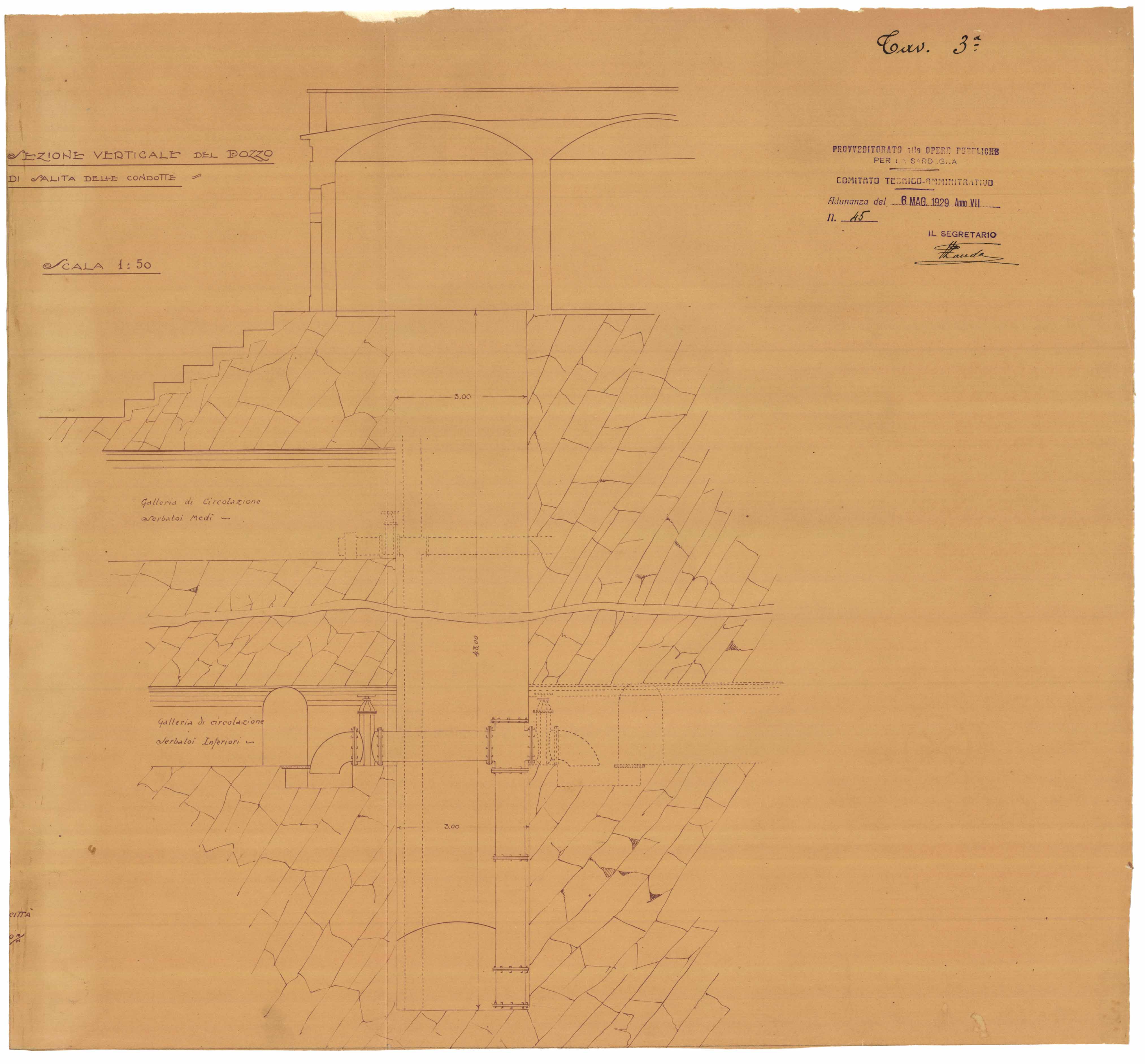- Disegno della sezione verticale del pozzo di salita delle condotte.