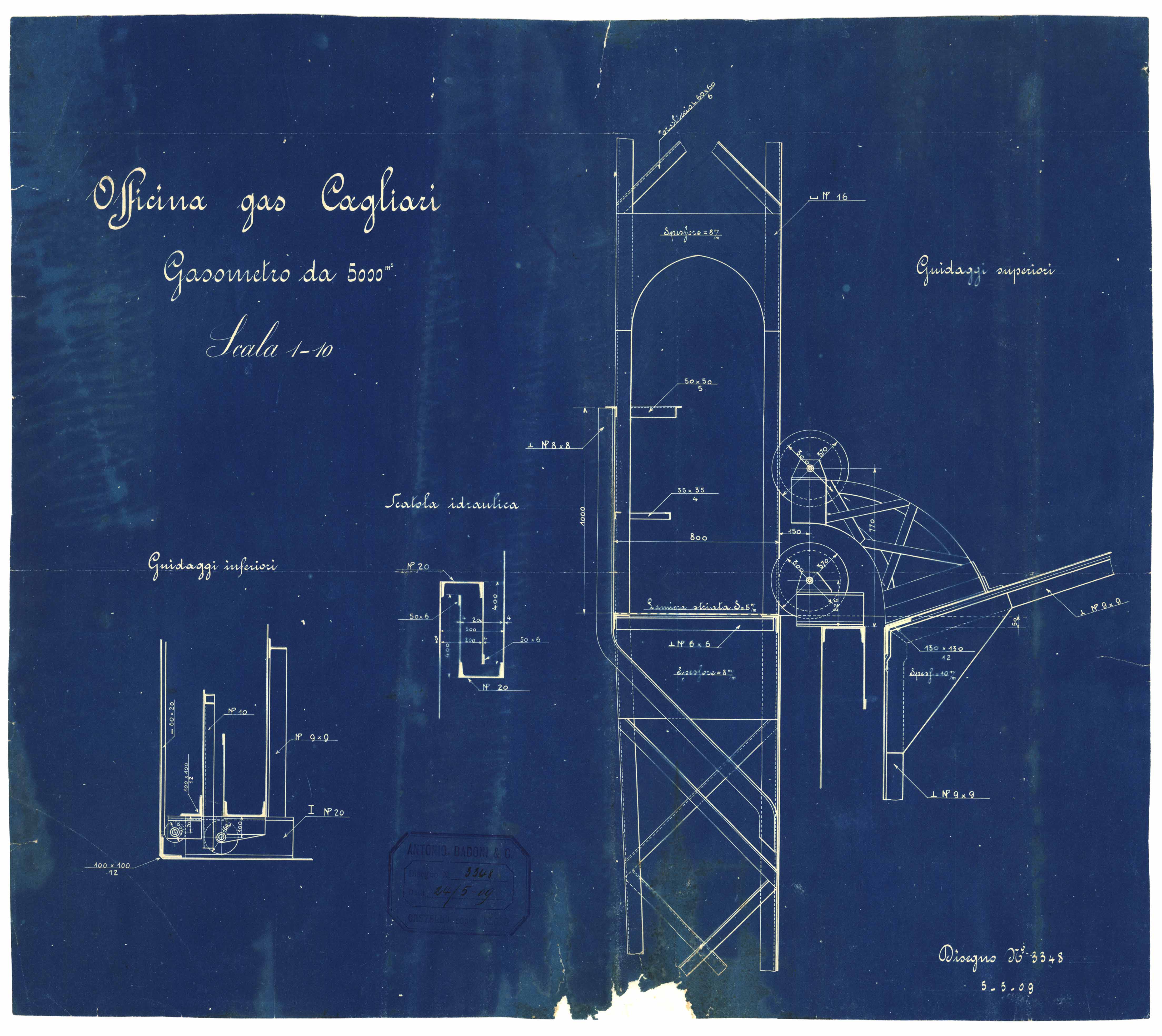 - Disegno è relativo ai macchinari presenti nella parte superiore di un gasometro di Cagliari.