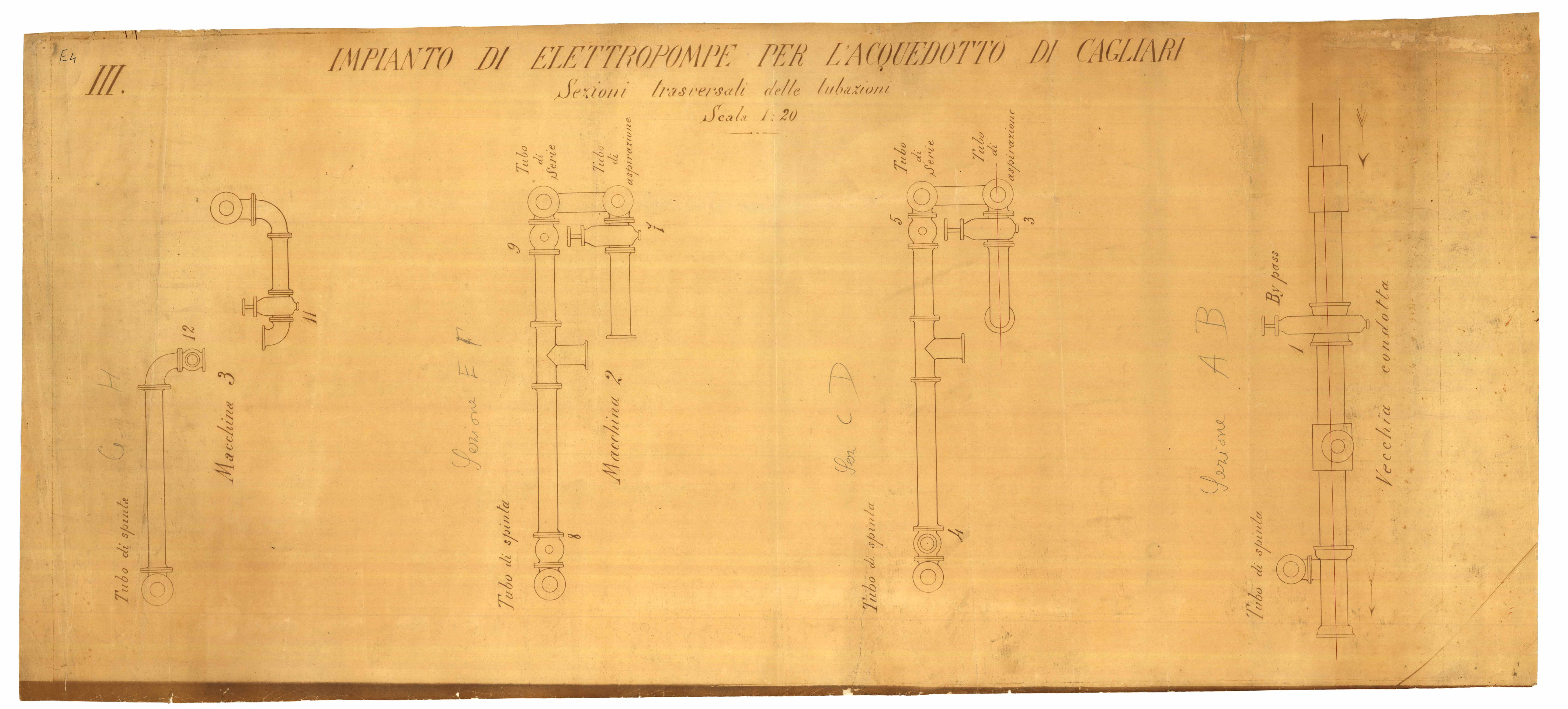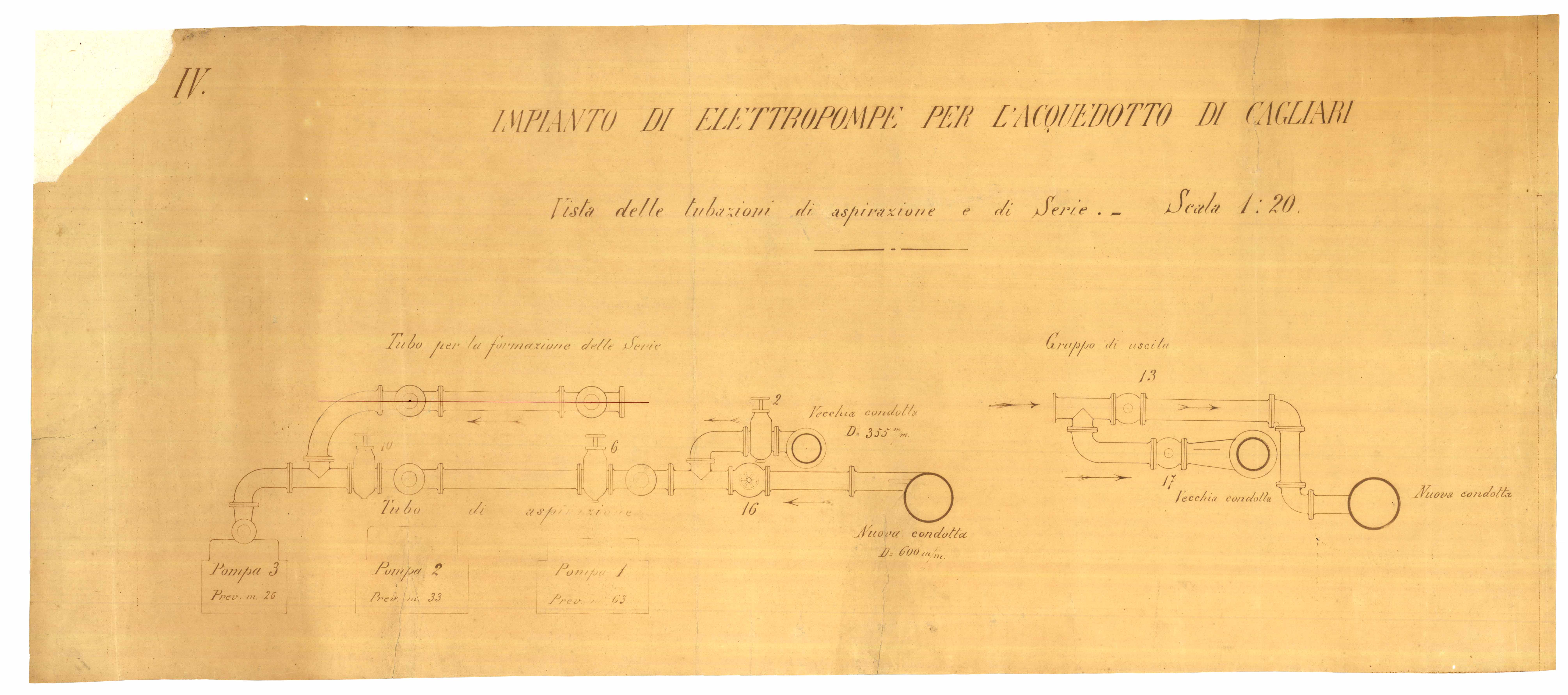 - Si tratta del disegno delle tubazioni di aspirazione e di serie dell'Acquedotto di Cagliari.
