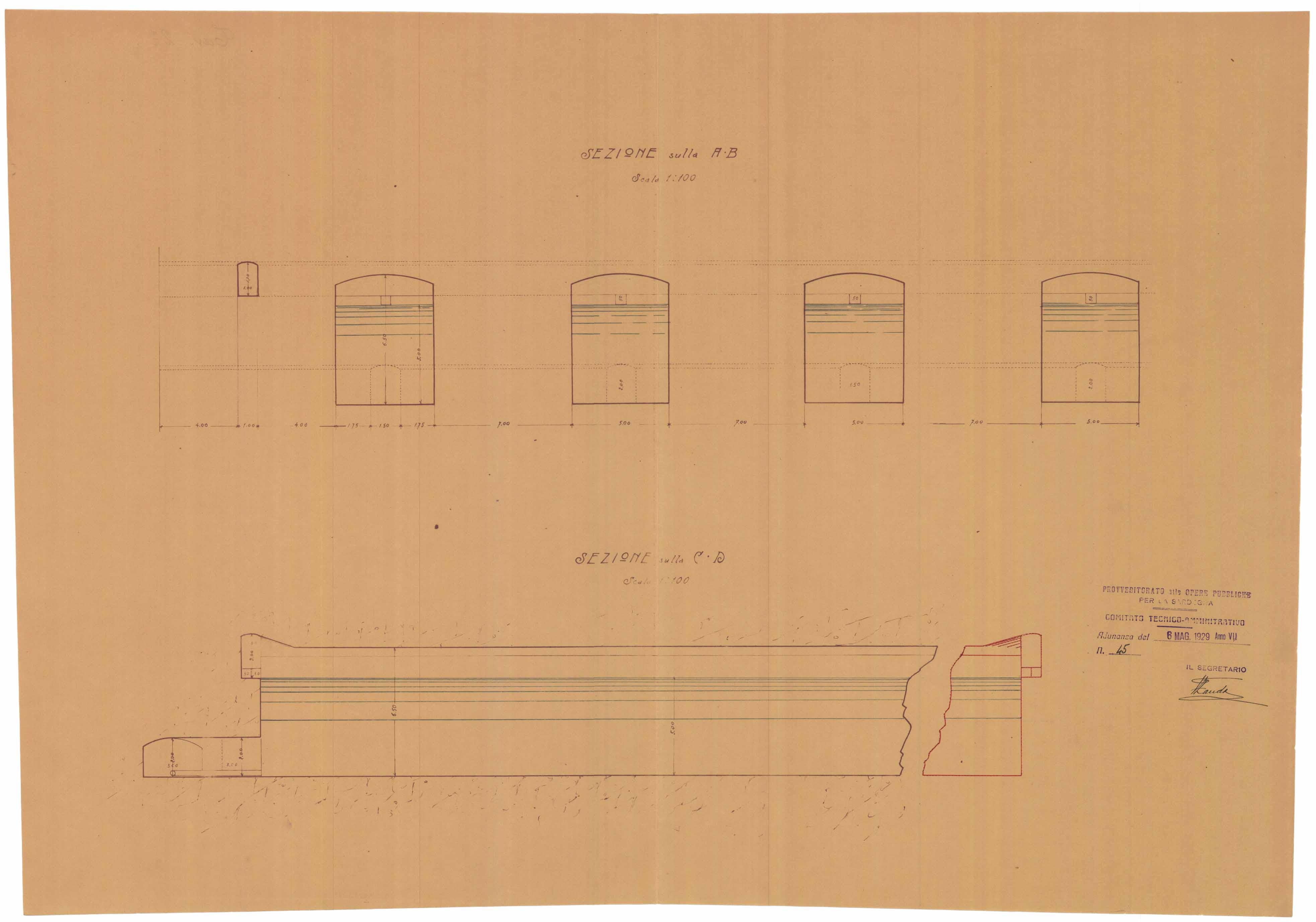 - Disegno della sezione dell'acquedotto con relativa planimetria, che corre lungo la strada di Quartu e Quartucciu, e lungo la palude vicino allo stagno di Quartu.